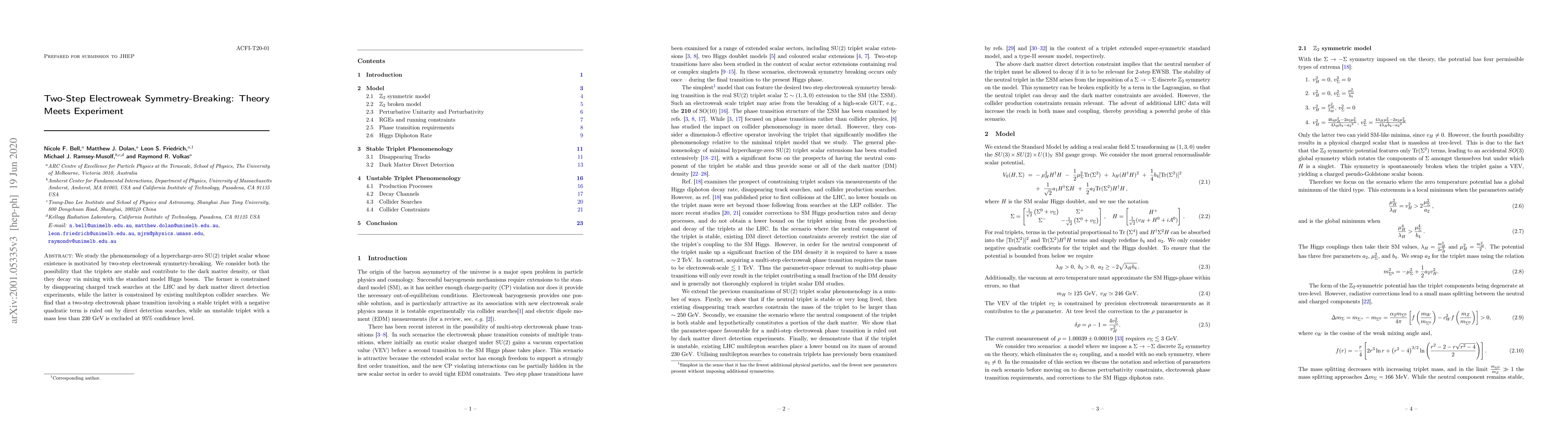 We study the phenomenology of a hypercharge-zero SU(2) triplet scalar whose existence is motivated by two-step electroweak symmetry-breaking. We consider both the possibility that the triplets are stable and contribute to the dark matter density, or that they decay via mixing with the standard model Higgs boson. The former is constrained by disappearing charged track searches at the LHC and by dark matter direct detection experiments, while the latter is constrained by existing multilepton collider searches. We find that a two-step electroweak phase transition involving a stable triplet with a negative quadratic term is ruled out by direct detection searches, while an unstable triplet with a mass less than $230\ \mathrm{GeV}$ is excluded at $95\%$ confidence level.
