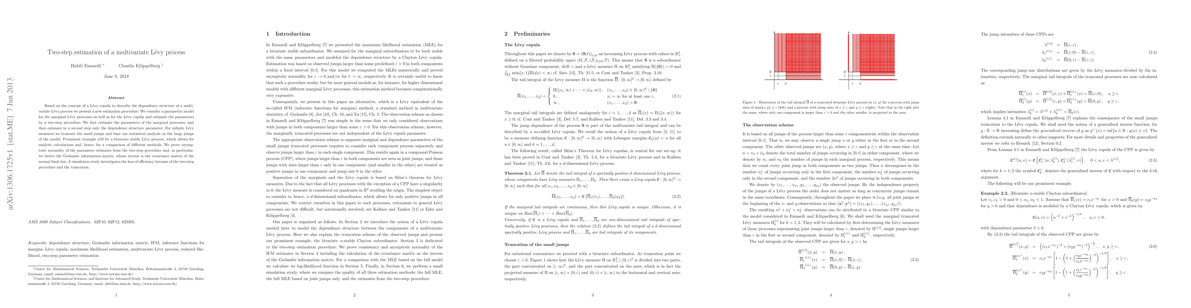 This paper introduces a two-step estimation method for a multivariate Lévy process using a Lévy copula to model dependence. The method first estimates marginal process parameters, followed by the dependence structure, with a focus on large jumps for infinite Lévy measures. Asymptotic normality and efficiency loss due to the two-step procedure are analyzed through a simulation study.