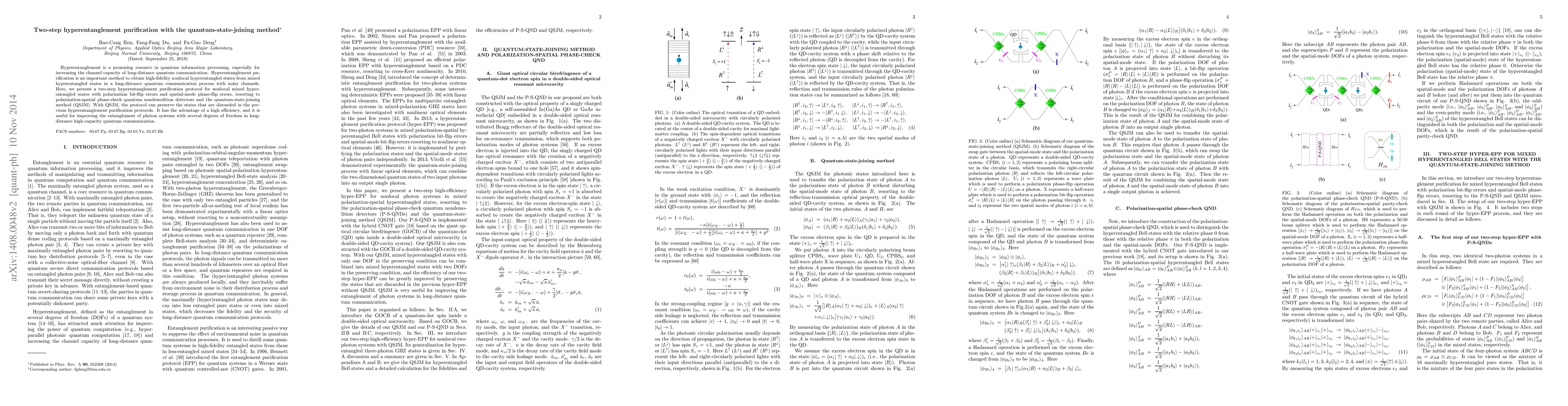 This paper proposes a two-step hyperentanglement purification protocol using the quantum-state-joining method to enhance the fidelity of nonlocal mixed hyperentangled states, addressing polarization bit-flip and spatial-mode phase-flip errors. The method is efficient and beneficial for improving photon system entanglement in long-distance quantum communication.