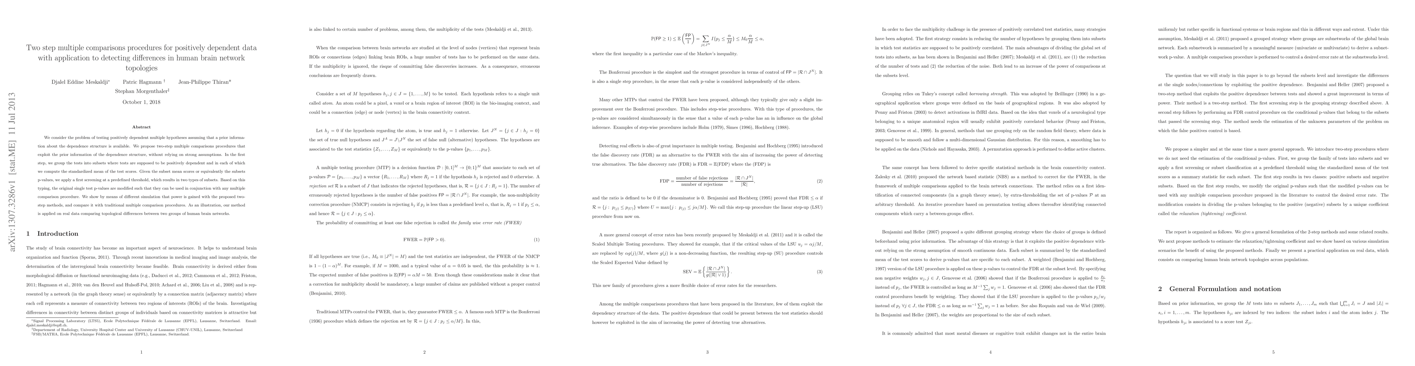We consider the problem of testing positively dependent multiple hypotheses assuming that a prior information about the dependence structure is available. We propose two-step multiple comparisons procedures that exploit the prior information of the dependence structure, without relying on strong assumptions. In the first step, we group the tests into subsets where tests are supposed to be positively dependent and in each of which we compute the standardized mean of the test scores. Given the subset mean scores or equivalently the subsets p-values, we apply a first screening at a predefined threshold, which results in two types of subsets. Based on this typing, the original single test p-values are modified such that they can be used in conjunction with any multiple comparison procedure. We show by means of different simulation that power is gained with the proposed two-step methods, and compare it with traditional multiple comparison procedures. As an illustration, our method is applied on real data comparing topological differences between two groups of human brain networks.