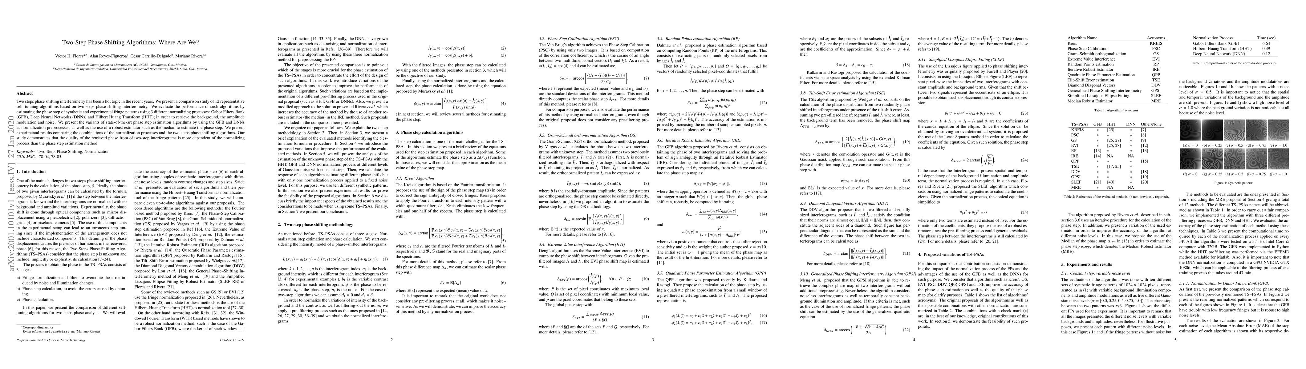 This paper compares 12 self-tuning algorithms for two-step phase shifting interferometry, evaluating their performance using synthetic and experimental fringe patterns. The study finds that the quality of phase retrieval is more influenced by the normalization process (Gabor Filters Bank, Deep Neural Networks, Hilbert Huang Transform) than the specific phase step estimation method.