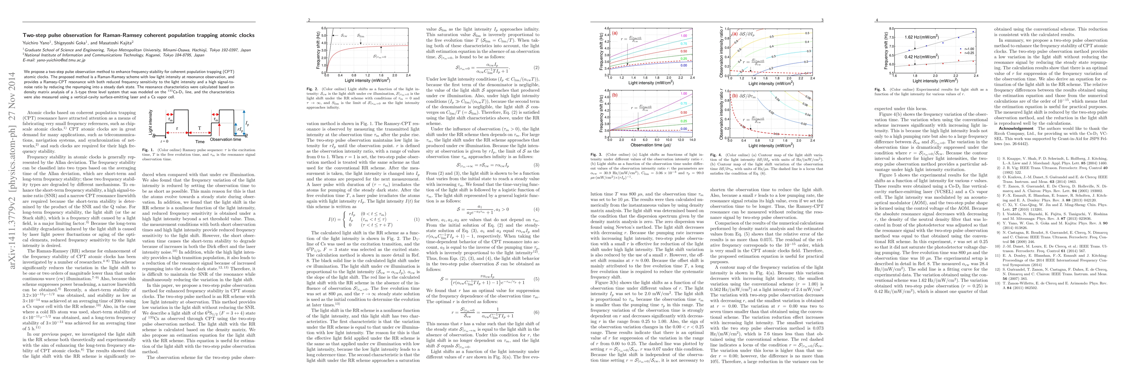 This research proposes a two-step pulse observation method for Raman-Ramsey coherent population trapping atomic clocks to enhance frequency stability. It achieves reduced light intensity sensitivity and improved signal-to-noise ratio, demonstrated through density matrix analysis and experimental validation on the $^{133}$Cs-D$_1$ line.