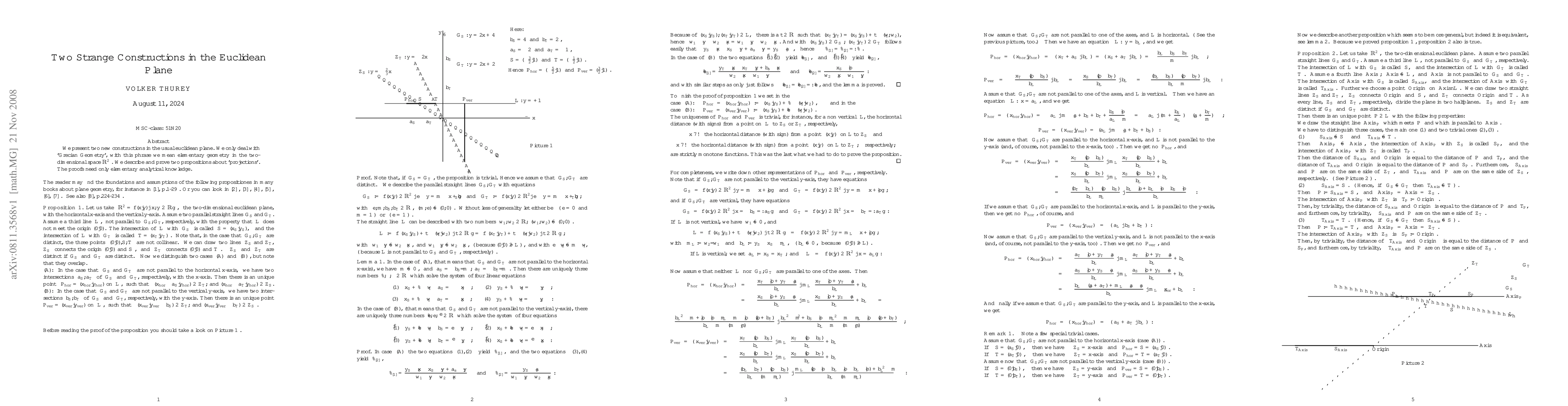 We present two new constructions in the usual euclidean plane. We only deal with 'Grecian Geometry', with this phrase we mean elementary geometry in the two-dimensional space R 2 . We describe and prove two propositions about 'projections'. The proofs need only elementary analytical knowledge.