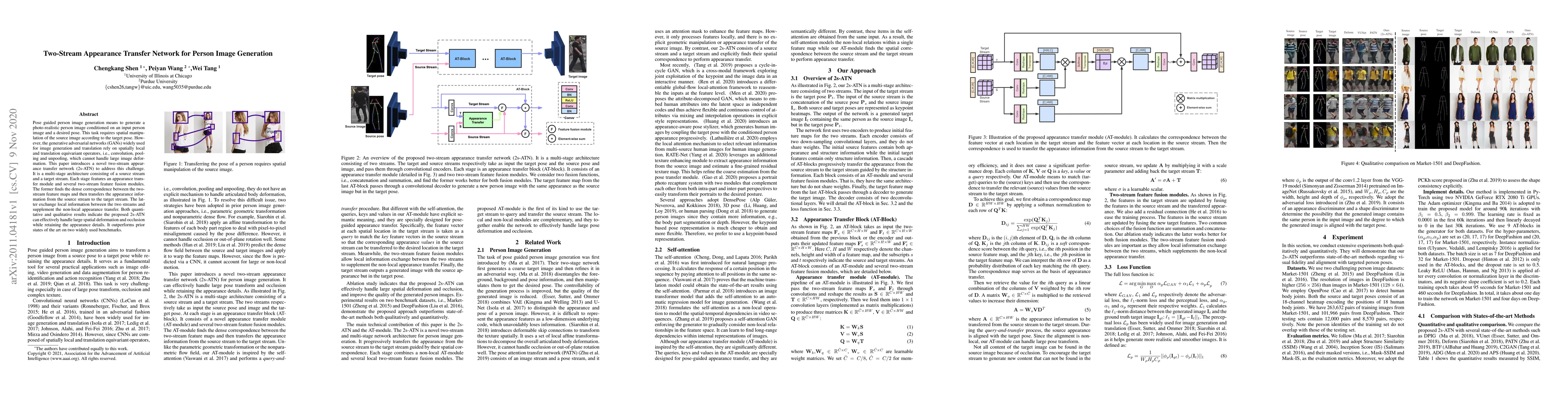 This paper proposes a two-stream appearance transfer network (2s-ATN) for generating photo-realistic person images conditioned on an input image and a desired pose. The 2s-ATN effectively handles large spatial deformations and occlusions by utilizing appearance transfer and feature fusion modules, outperforming existing methods on benchmark datasets.