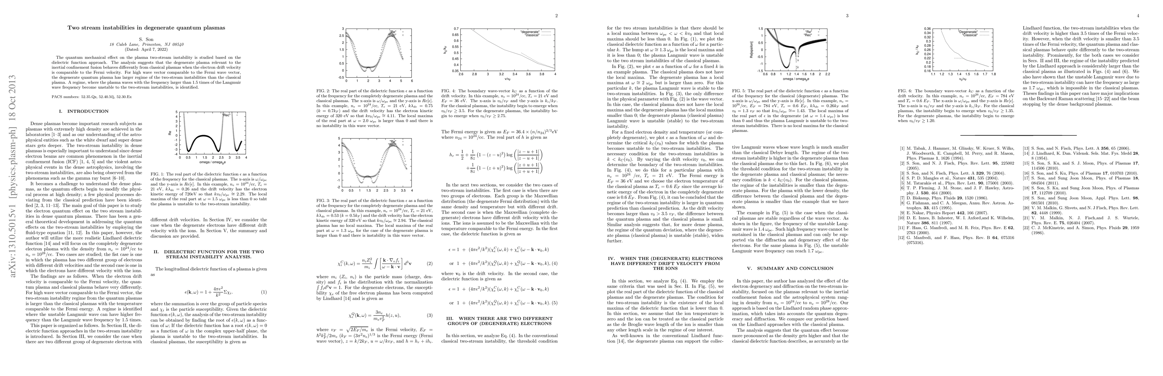 The quantum mechanical effect on the plasma two-stream instability is studied based on the dielectric function approach. The analysis suggests that the degenerate plasma relevant to the inertial confinement fusion behaves differently from classical plasmas when the electron drift velocity is comparable to the Fermi velocity. For high wave vector comparable to the Fermi wave vector, the degenerate quantum plasma has larger regime of the two-stream instabilities than the classical plasma. A regime, where the plasma waves with the frequency larger than 1.5 times of the Langmuir wave frequency become unstable to the two-stream instabilities, is identified.
