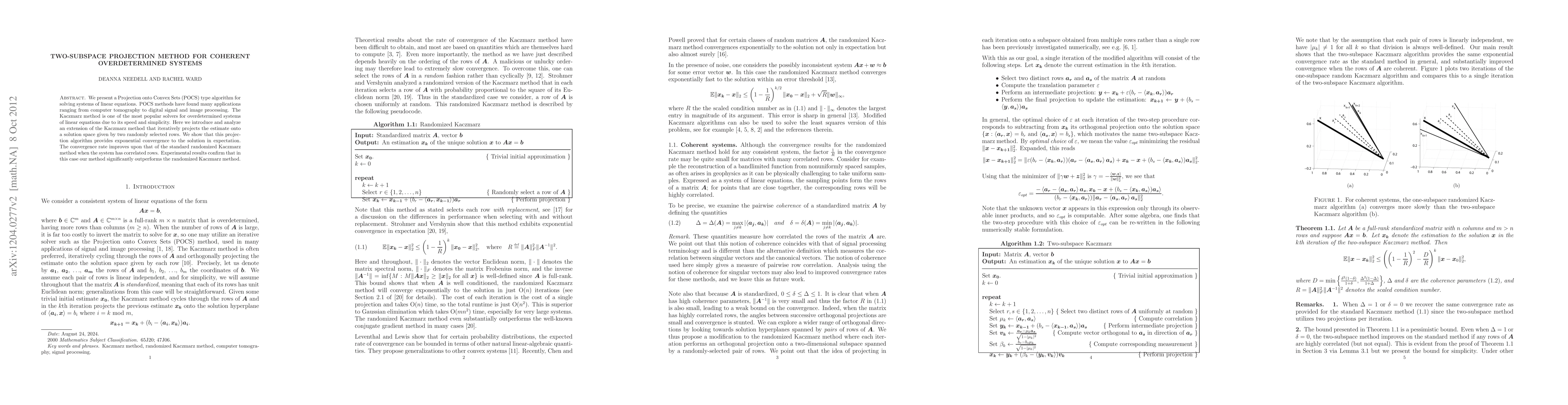 We present a Projection onto Convex Sets (POCS) type algorithm for solving systems of linear equations. POCS methods have found many applications ranging from computer tomography to digital signal and image processing. The Kaczmarz method is one of the most popular solvers for overdetermined systems of linear equations due to its speed and simplicity. Here we introduce and analyze an extension of the Kaczmarz method that iteratively projects the estimate onto a solution space given by two randomly selected rows. We show that this projection algorithm provides exponential convergence to the solution in expectation. The convergence rate improves upon that of the standard randomized Kaczmarz method when the system has correlated rows. Experimental results confirm that in this case our method significantly outperforms the randomized Kaczmarz method.