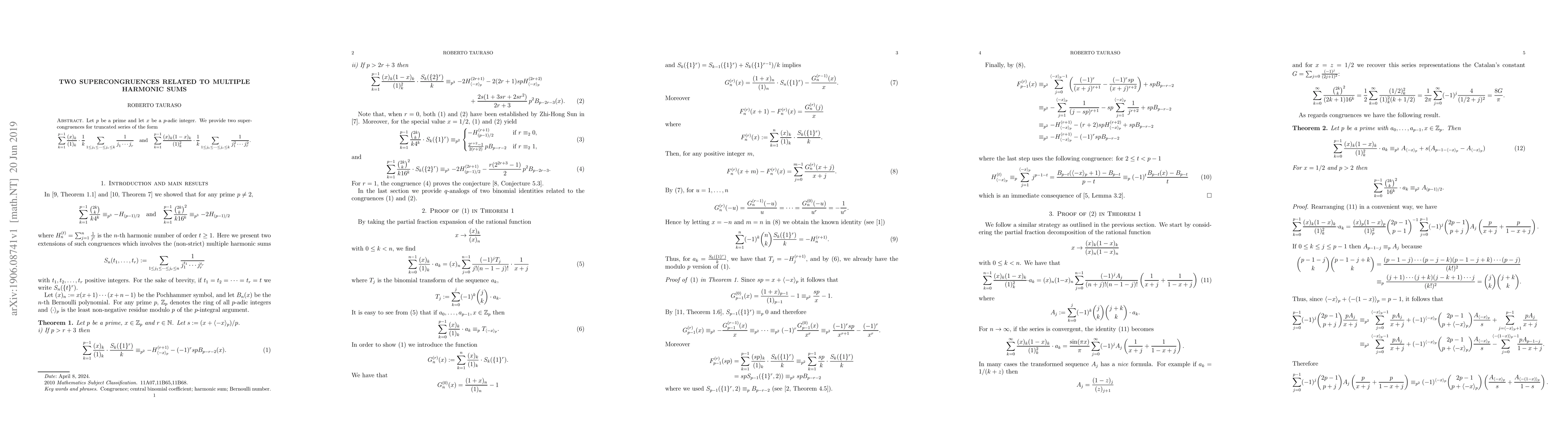 Let $p$ be a prime and let $x$ be a $p$-adic integer. We provide two supercongruences for truncated series of the form $$\sum_{k=1}^{p-1} \frac{(x)_k}{(1)_k}\cdot \frac{1}{k}\sum_{1\le j_1\le\cdots\le j_r\le k}\frac{1}{j_1^{}\cdots j_r^{}}\quad\mbox{and}\quad \sum_{k=1}^{p-1} \frac{(x)_k(1-x)_k}{(1)_k^2}\cdot \frac{1}{k}\sum_{1\le j_1\le\cdots\le j_r\le k}\frac{1}{j_1^{2}\cdots j_r^{2}}.$$