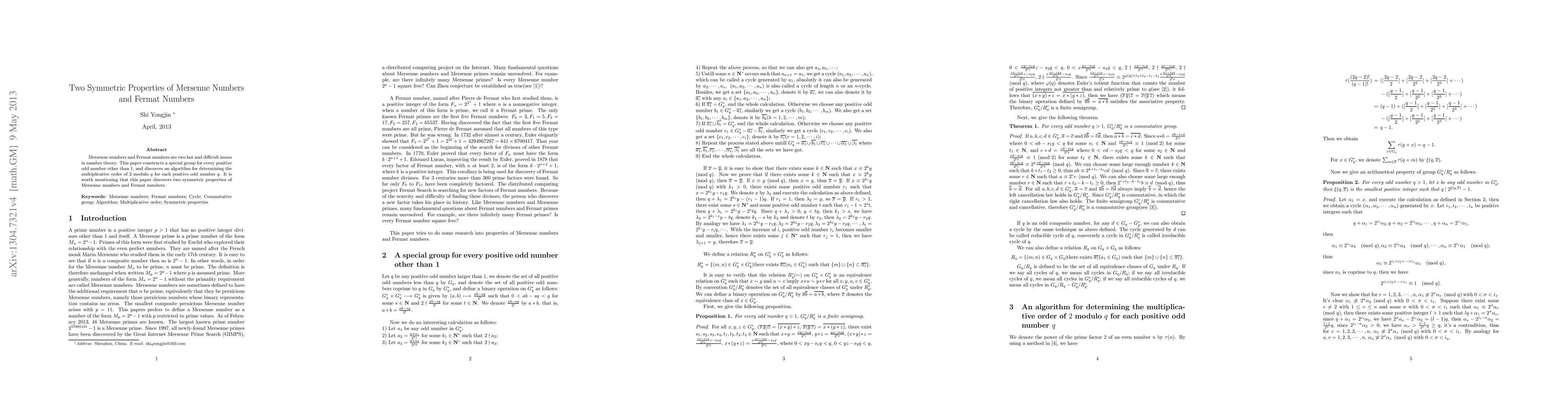 Mersenne numbers and Fermat numbers are two hot and difficult issues in number theory. This paper constructs a special group for every positive odd number other than 1, and discovers an algorithm for determining the multiplicative order of 2 modulo q for each positive odd number q. It is worth mentioning that this paper discovers two symmetric properties of Mersenne numbers and Fermat numbers.