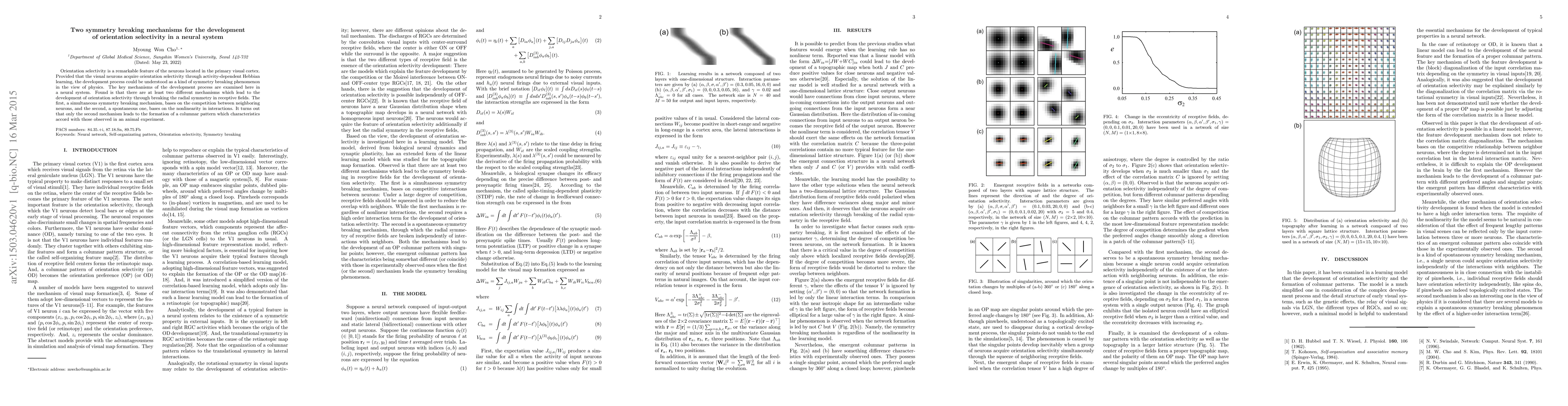 Researchers identified two mechanisms for developing orientation selectivity in neural systems: a competition-based mechanism and a nonlinearity-based mechanism. Only the nonlinearity-based mechanism resulted in columnar patterns similar to those observed in animal experiments.