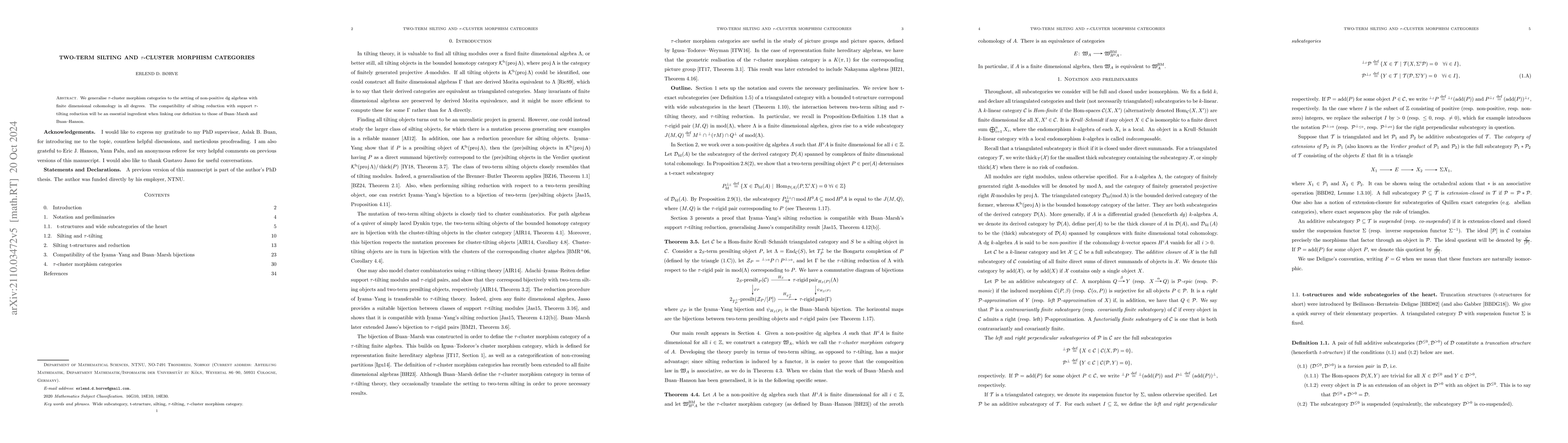 This paper generalises $\tau$-cluster morphism categories to non-positive proper dg algebras, linking silting reduction to support $\tau$-tilting reduction and defining two-term presilting sequences in derived categories corresponding to signed $\tau$-exceptional sequences.