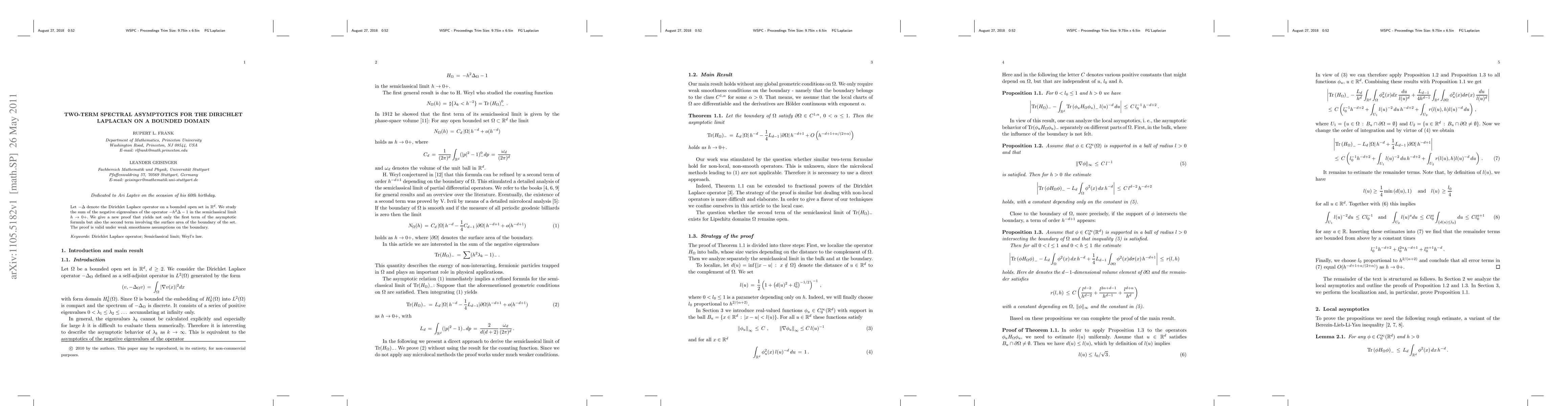 This paper presents a new proof for the two-term spectral asymptotics of the Dirichlet Laplacian on a bounded domain, providing both the first and second terms of the asymptotic formula, including the surface area of the boundary, under minimal smoothness conditions.