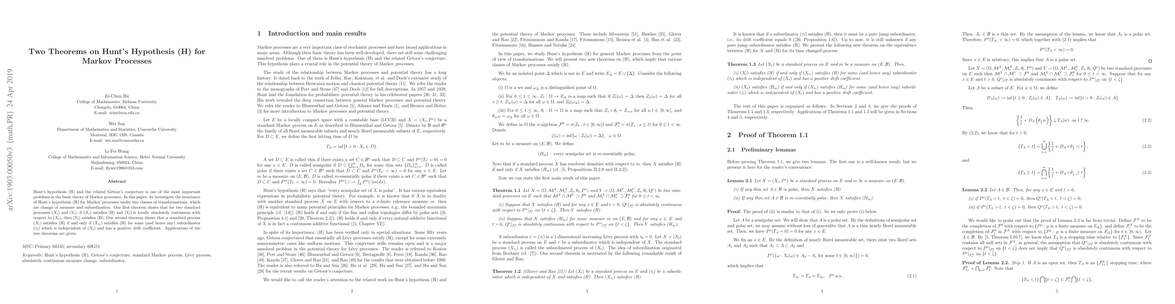Hunt's hypothesis (H) and the related Getoor's conjecture is one of the most important problems in the basic theory of Markov processes. In this paper, we investigate the invariance of Hunt's hypothesis (H) for Markov processes under two classes of transformations, which are change of measure and subordination. Our first theorem shows that for two standard processes $(X_t)$ and $(Y_t)$, if $(X_t)$ satisfies (H) and $(Y_t)$ is locally absolutely continuous with respect to $(X_t)$, then $(Y_t)$ satisfies (H). Our second theorem shows that a standard process $(X_t)$ satisfies (H) if and only if $(X_{\tau_t})$ satisfies (H) for some (and hence any) subordinator $(\tau_t)$ which is independent of $(X_t)$ and has a positive drift coefficient. Applications of the two theorems are given.