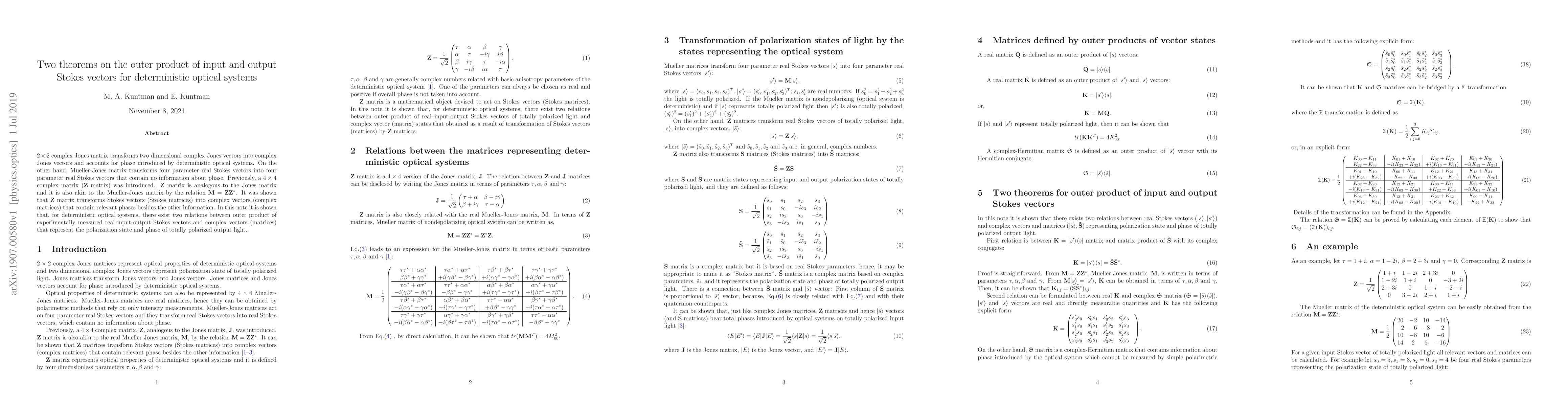 Researchers found two theorems that relate measured Stokes vectors to complex vectors representing polarization state and phase in deterministic optical systems.
