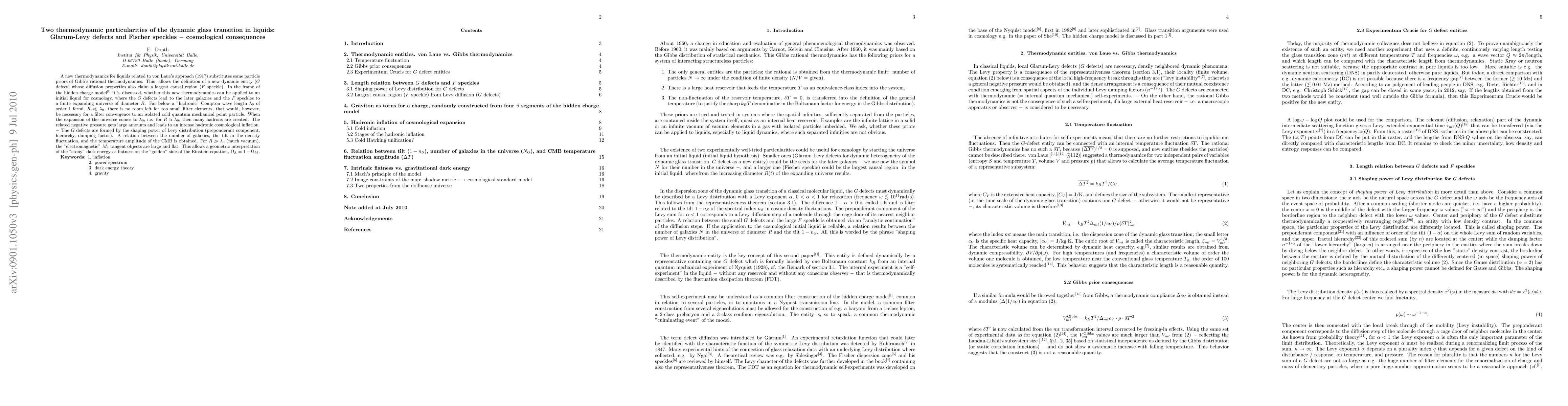 A new thermodynamics for liquids related to von Laue's approach (1917) substitutes some particle priors of Gibb's rational thermodynamics. This allows the definition of a new dynamic entity ($G$ defect) whose diffusion properties also claim a largest causal region ($F$ speckle). In the frame of the hidden charge model \cite{this part} it is discussed, whether this new thermodynamics can be applied to an initial liquid for cosmology, where the $G$ defects lead to the later galaxies and the $F$ speckles to a finite expanding universe of diameter $R$. Far below a "hadronic" Compton wave length $\lambda_{0}$ of order 1 fermi, $R\ll \lambda_{0}$, there is no room left for too small filter elements, that would, however, be necessary for a filter convergence to an isolated cold quantum mechanical point particle. When the expansion of the universe comes to $\lambda_{0}$, i.e. for $R\approx \lambda_{0}$, then many hadrons are created. The related negative pressure gets large amounts and leads to an intense hadronic cosmological inflation. -- The $G$ defects are formed by the shaping power of Levy distribution (preponderant component, hierarchy, damping factor). A relation between the number of galaxies, the tilt in the density fluctuation, and the temperature amplitude of the CMB is obtained. For $R\gg \lambda_{0}$ (much vacuum), the "electromagnetic" $M_4$ tangent objects are large and flat. This allows a geometric interpretation of the "stony" dark energy as flatness on the "golden" side of the Einstein equation, $\Omega_{\Lambda}=1-\Omega_{M}$.