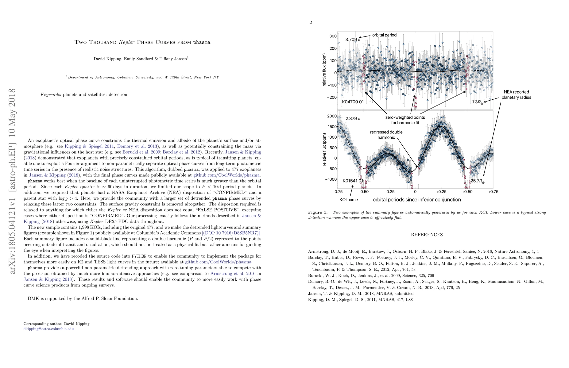 An exoplanet's optical phase curve constrains the thermal emission and albedo of the planet's surface and/or atmosphere, as well as potentially constraining the mass via gravitational influences on the host star. Recently, Jansen & Kipping (2018) demonstrated that exoplanets with precisely constrained orbital periods, as is typical of transiting planets, enable one to exploit a Fourier-argument to non-parametrically separate optical phase curves from long-term photometric time series in the presence of realistic noise structures. This algorithm, dubbed phasma, was applied to 477 confirmed exoplanets in the original paper. In this research note, we extend the sample to all non-false positive Kepler Objects of Interest with periods less than ten days. Our sample of 1998 detrended phase curves are made publicly available to help the community search for various effects. A Python port of the phasma code is also made available.