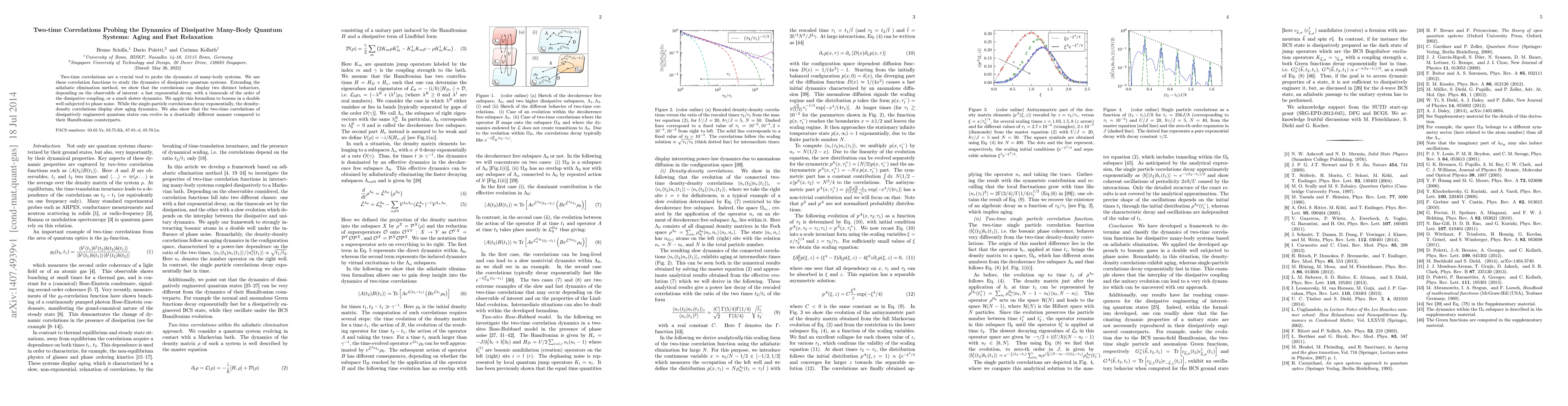 This paper explores two-time correlation functions to investigate the dynamics of dissipative many-body quantum systems, revealing two distinct decay behaviors: fast exponential decay and slow aging. The study applies this analysis to bosons in a double well, demonstrating different dynamics for single-particle and density-density correlations.
