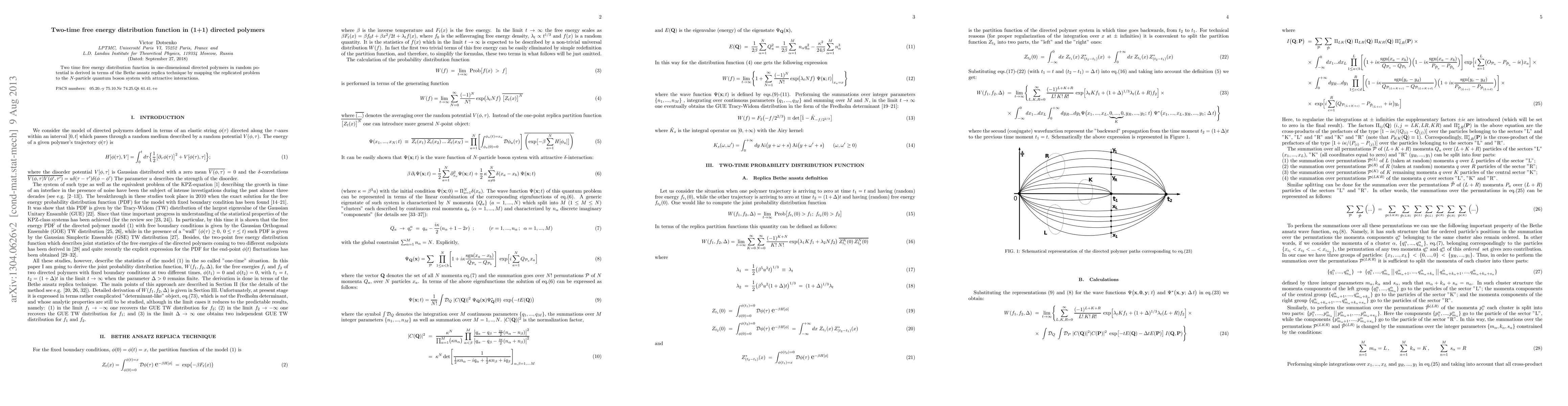 Researchers developed an explicit expression for the free energy distribution function in one-dimensional directed polymers with random potential using a technique called the Bethe ansatz replica method. This breakthrough sheds light on the behavior of these systems, which have applications in physics and other fields.