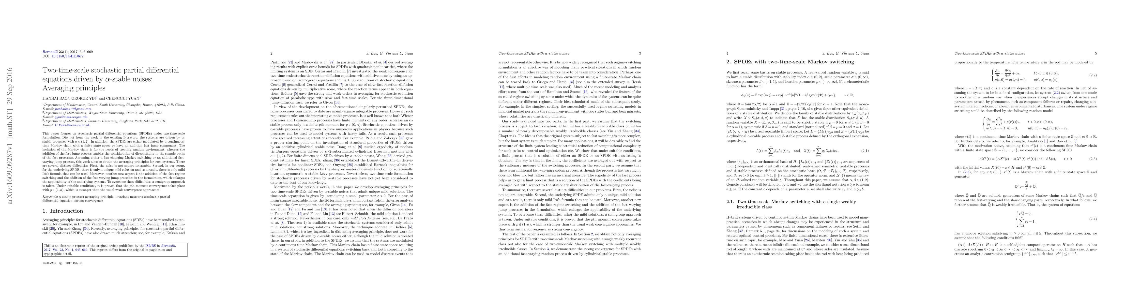 This paper focuses on stochastic partial differential equations (SPDEs) under two-time-scale formulation. Distinct from the work in the existing literature, the systems are driven by $\alpha$-stable processes with $\alpha \in(1,2)$. In addition, the SPDEs are either modulated by a continuous-time Markov chain with a finite state space or have an addition fast jump component. The inclusion of the Markov chain is for the needs of treating random environment, whereas the addition of the fast jump process enables the consideration of discontinuity in the sample paths of the fast processes. Assuming either a fast changing Markov switching or an additional fast-varying jump process, this work aims to obtain the averaging principles for such systems. There are several distinct difficulties. First, the noise is not square integrable. Second, in our setup, for the underlying SPDE, there is only a unique mild solution and as a result, there is only mild It\^{o}'s formula that can be used. Moreover, another new aspect is the addition of the fast regime switching and the addition of the fast varying jump processes in the formulation, which enlarges the applicability of the underlying systems. To overcome these difficulties, a semigroup approach is taken. Under suitable conditions, it is proved that the $p$th moment convergence takes place with $p\in(1,\alpha )$, which is stronger than the usual weak convergence approaches.