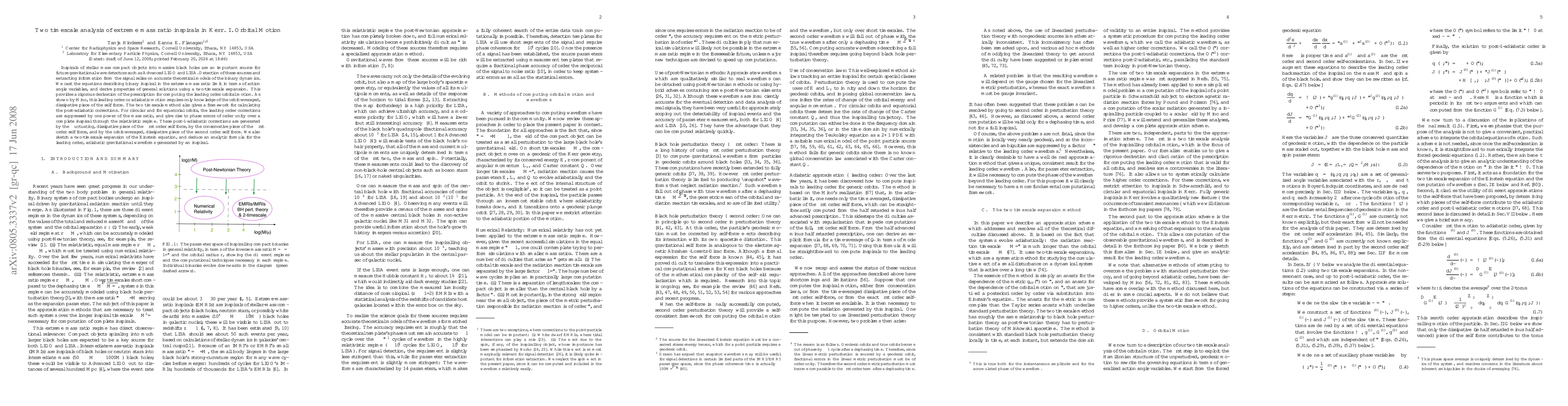 This paper develops a two-timescale analysis for extreme mass ratio inspirals in a Kerr black hole, providing a rigorous method for computing leading order orbital motion and post-adiabatic corrections. It derives analytic formulas for gravitational waveforms and shows that post-1-adiabatic corrections are suppressed by the mass ratio, affecting phase errors over the inspiral.