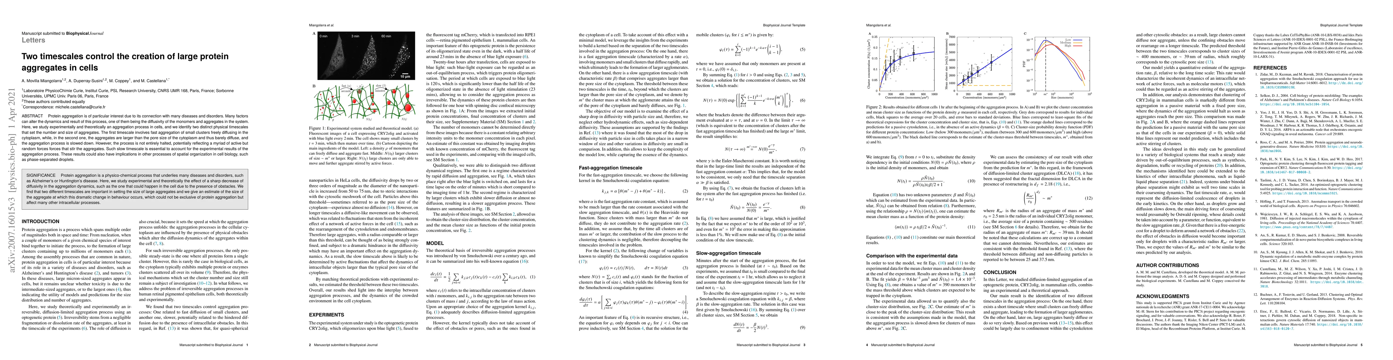 Researchers identify two timescales controlling protein aggregation in cells: a fast timescale for small clusters and a slower timescale for larger aggregates that barely diffuse.