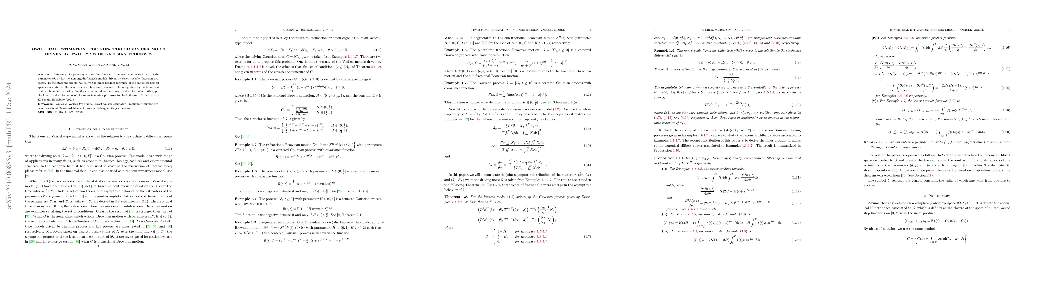 This paper investigates the non-ergodic Vasicek model driven by two types of Gaussian processes, deriving the joint asymptotic distribution of parameter estimations. It identifies three distinct scaling types in the asymptotic behavior of the estimator for one parameter, contributing to statistical estimations for such models.