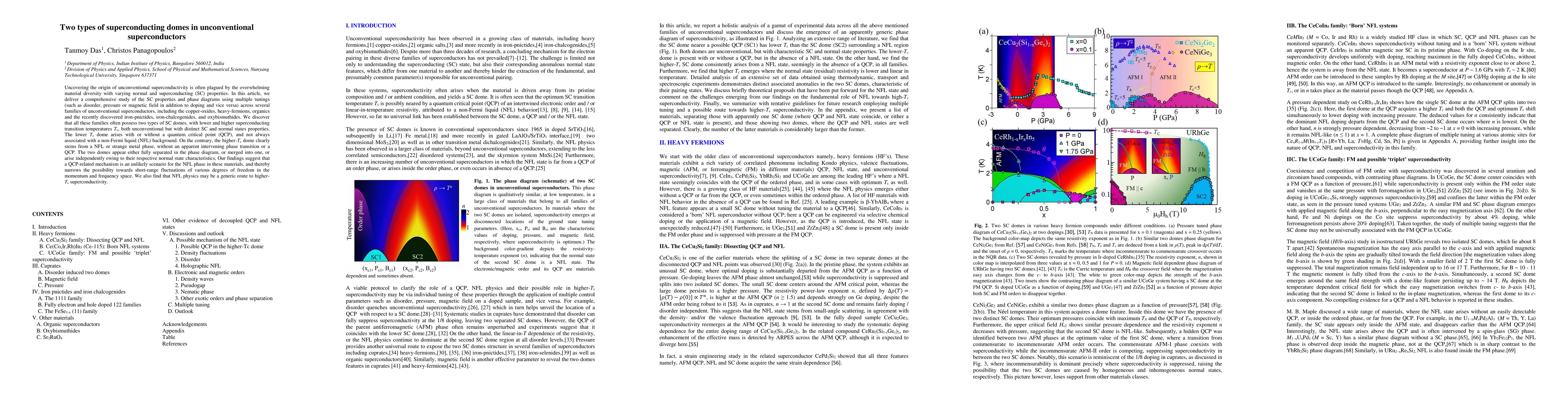 This paper investigates the superconducting properties of various unconventional superconductors, identifying two distinct superconducting domes with differing Tc values and normal state characteristics. The lower Tc dome may or may not involve a quantum critical point, while the higher Tc dome is linked to a non-Fermi liquid phase, suggesting that quantum criticality is unlikely for the non-Fermi liquid phase and hinting at NFL physics as a pathway to higher-Tc superconductivity.