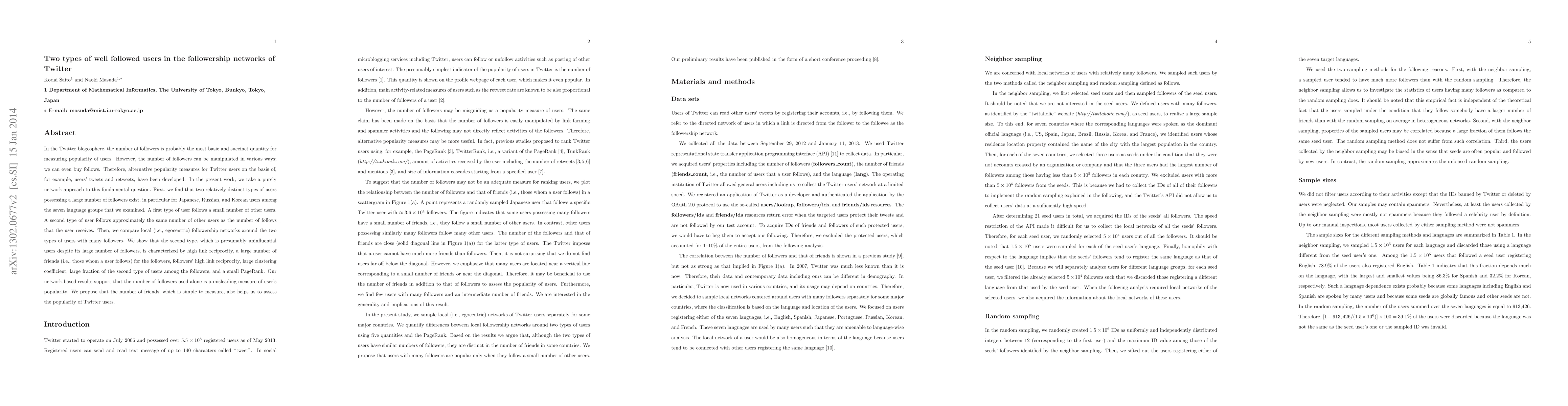 This paper identifies two distinct types of well-followed Twitter users in followership networks, particularly among Japanese, Russian, and Korean users. It finds that one type follows few users while the other follows a number comparable to their followers, revealing complex network characteristics like high link reciprocity and clustering among the latter.