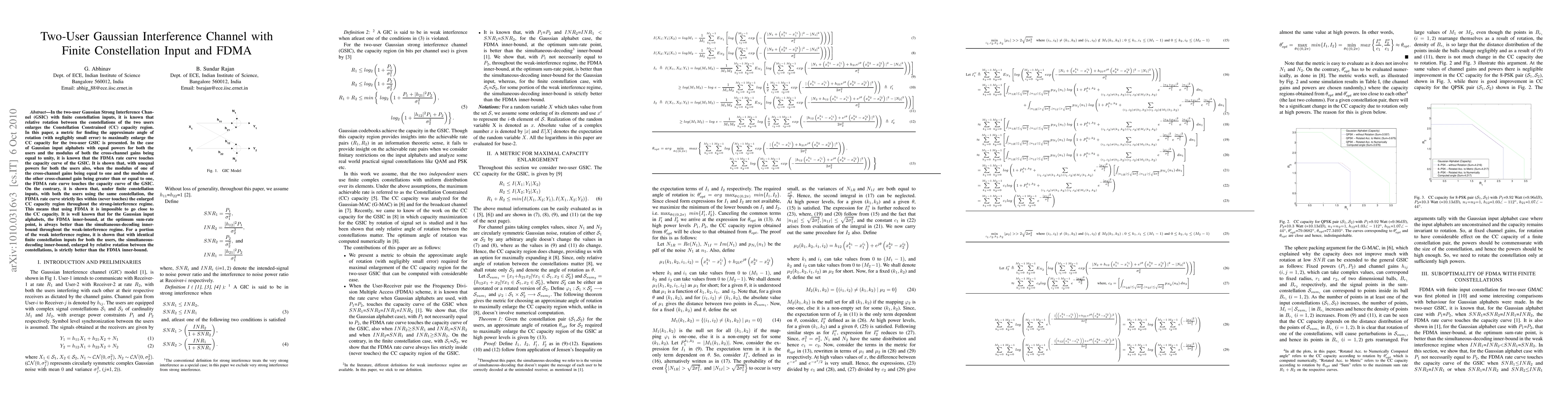 In the two-user Gaussian Strong Interference Channel (GSIC) with finite constellation inputs, it is known that relative rotation between the constellations of the two users enlarges the Constellation Constrained (CC) capacity region. In this paper, a metric for finding the approximate angle of rotation (with negligibly small error) to maximally enlarge the CC capacity for the two-user GSIC is presented. In the case of Gaussian input alphabets with equal powers for both the users and the modulus of both the cross-channel gains being equal to unity, it is known that the FDMA rate curve touches the capacity curve of the GSIC. It is shown that, with unequal powers for both the users also, when the modulus of one of the cross-channel gains being equal to one and the modulus of the other cross-channel gain being greater than or equal to one, the FDMA rate curve touches the capacity curve of the GSIC. On the contrary, it is shown that, under finite constellation inputs, with both the users using the same constellation, the FDMA rate curve strictly lies within (never touches) the enlarged CC capacity region throughout the strong-interference regime. This means that using FDMA it is impossible to go close to the CC capacity. It is well known that for the Gaussian input alphabets, the FDMA inner-bound, at the optimum sum-rate point, is always better than the simultaneous-decoding inner-bound throughout the weak-interference regime. For a portion of the weak interference regime, it is shown that with identical finite constellation inputs for both the users, the simultaneous-decoding inner-bound, enlarged by relative rotation between the constellations, is strictly better than the FDMA inner-bound.