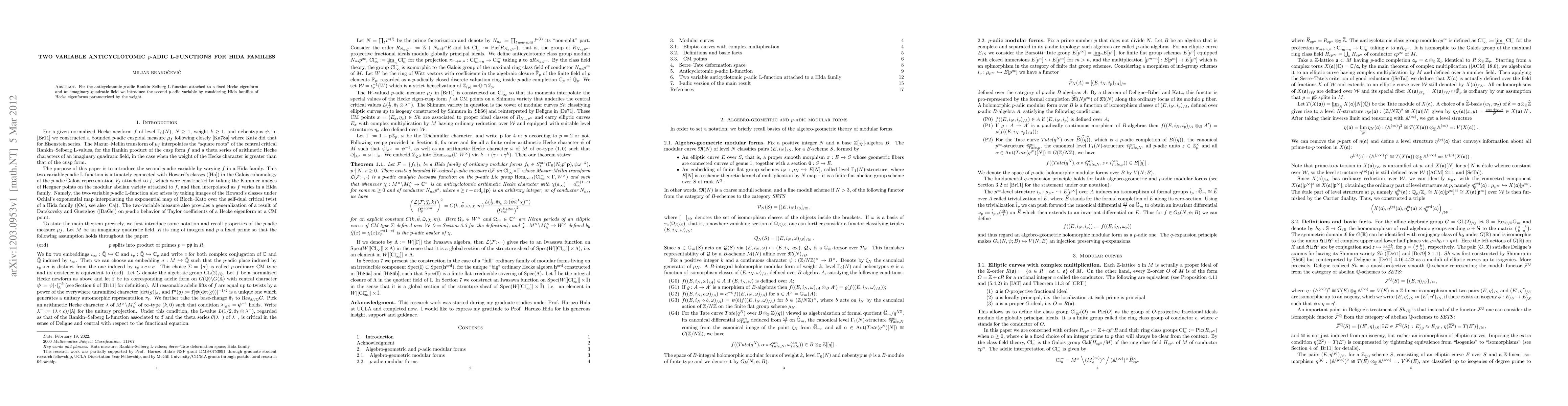 Summary: The paper introduces a two-variable anticyclotomic p-adic L-function linked to Hida families of Hecke eigenforms, extending the traditional Rankin-Selberg L-function by incorporating an additional p-adic variable to account for weight parameters.