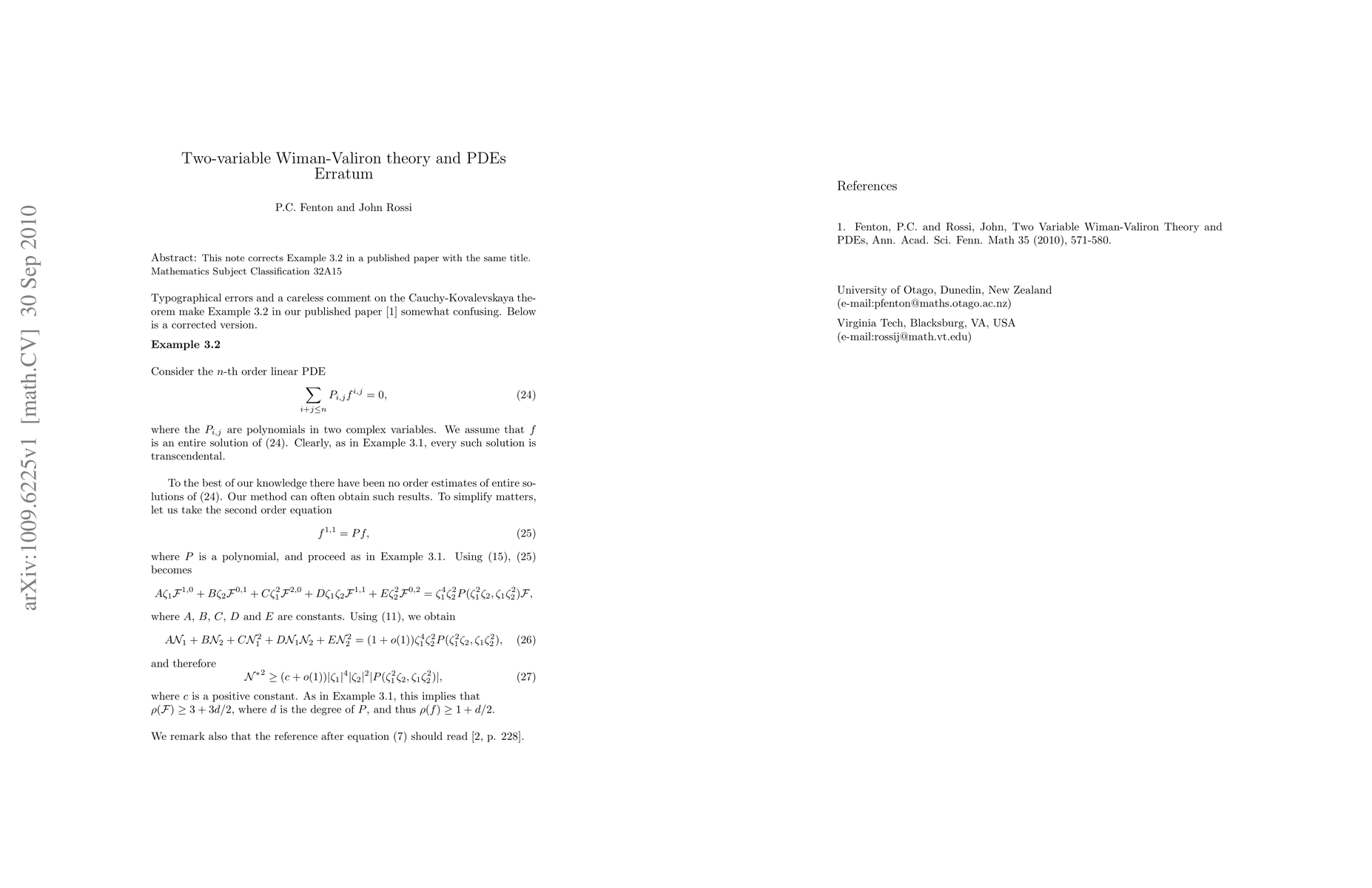 This note corrects Example 3.2 in Two-Variable Wiman-Valiron Theory and PDEs by the authors which appeared in Ann. Acad. Sci. Fenn Math. (35) (2010), 571-580.