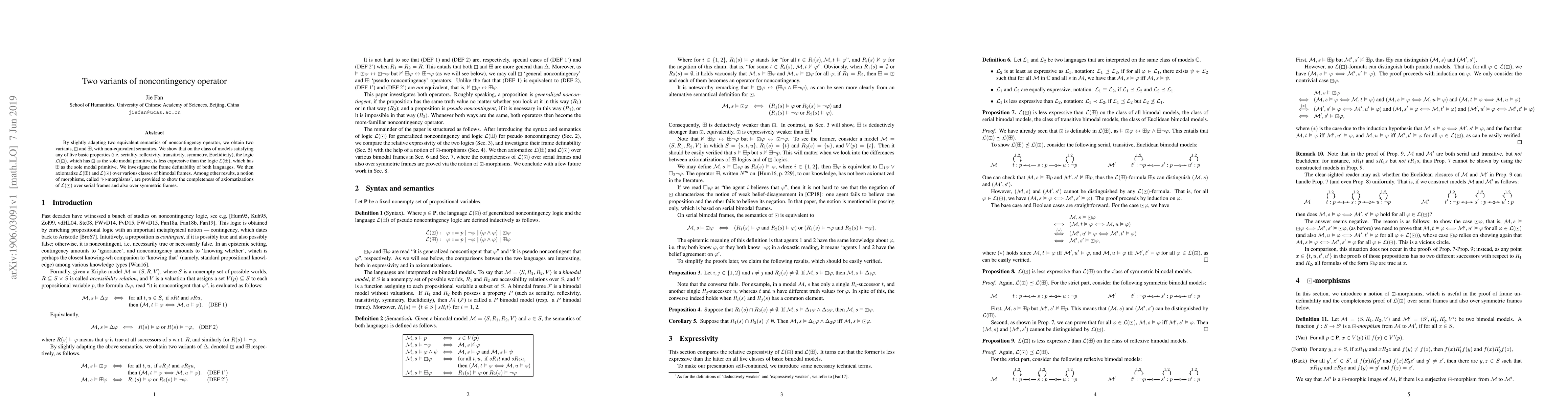 By slightly adapting two equivalent semantics of noncontingency operator, we obtain two variants, $\boxdot$ and $\boxplus$, with non-equivalent semantics. We show that on the class of models satisfying any of five basic properties (i.e. seriality, reflexivity, transitivity, symmetry, Euclidicity), the logic $\mathcal{L}(\boxdot)$, which has $\boxdot$ as the sole modal primitive, is less expressive than the logic $\mathcal{L}(\boxplus)$, which has $\boxplus$ as the sole modal primitive. We investigate the frame definability of both languages. We then axiomatize $\mathcal{L}(\boxplus)$ and $\mathcal{L}(\boxdot)$ over various classes of bimodal frames. Among other results, a notion of morphisms, called `$\boxdot$-morphisms', are provided to show the completeness of axiomatizations of $\mathcal{L}(\boxdot)$ over serial frames and also over symmetric frames.