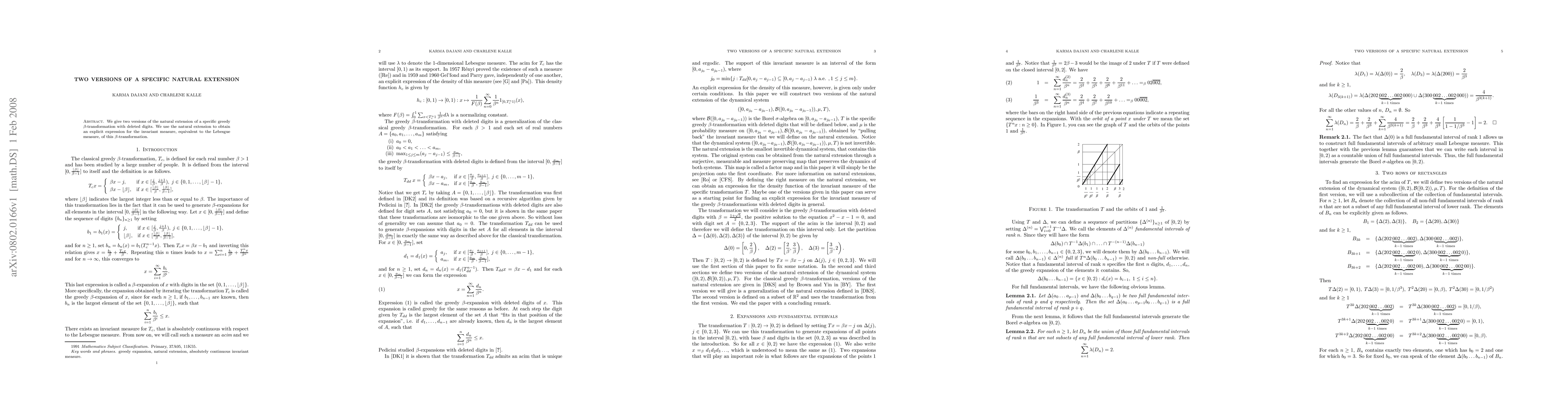 We give two versions of the natural extension of a specific greedy beta-transformation with deleted digits. We use the natural extension to obtain an explicit expression for the invariant measure, equivalent to the Lebesgue measure, of this beta-transformation.