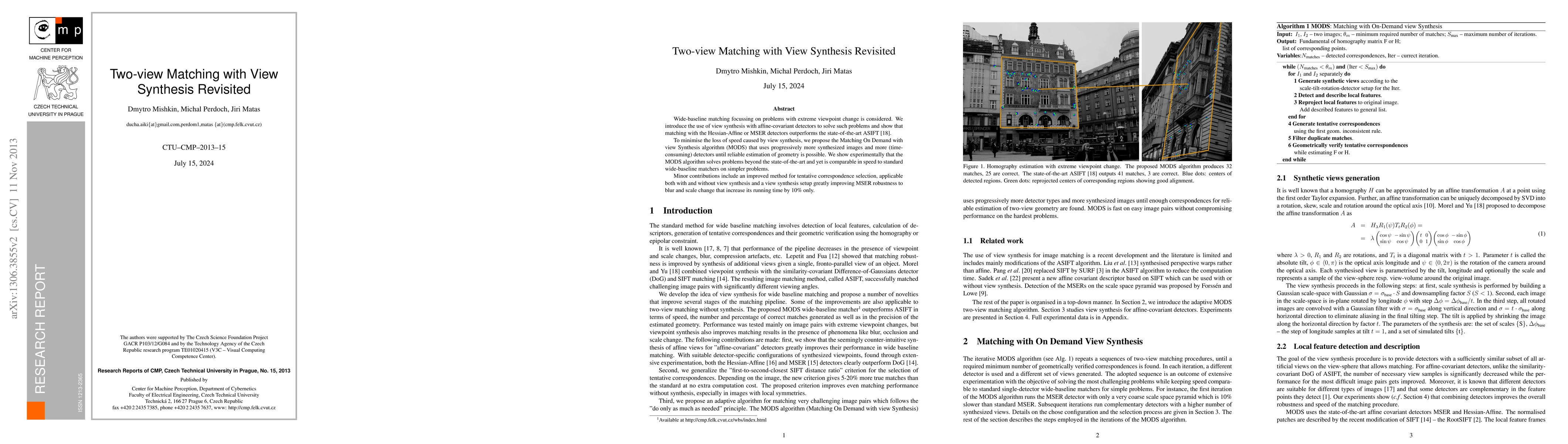 A new algorithm called MODS improves wide-baseline matching with extreme viewpoint change by using view synthesis and a variable detector approach, outperforming the state-of-the-art ASIFT matcher.