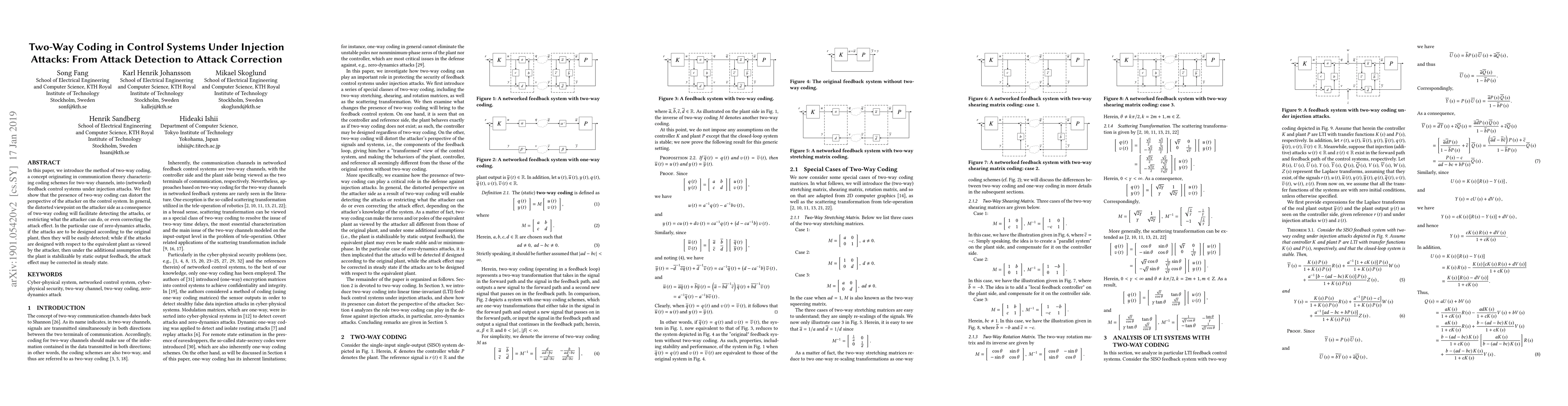 Researchers introduce a new method called two-way coding to improve control systems under injection attacks, making it easier to detect and correct attacks. This approach distorts the attacker's perspective, allowing for better defense strategies.