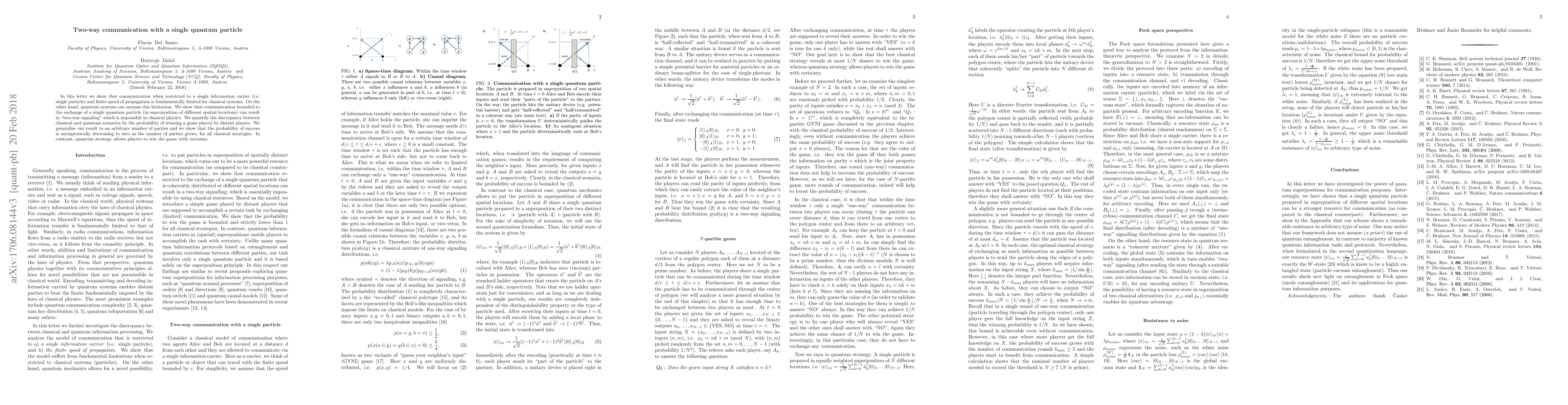 Quantum systems can facilitate two-way communication with a single particle, allowing for guaranteed success in games played with distant players, unlike classical systems where the probability of success decreases as the number of parties grows.