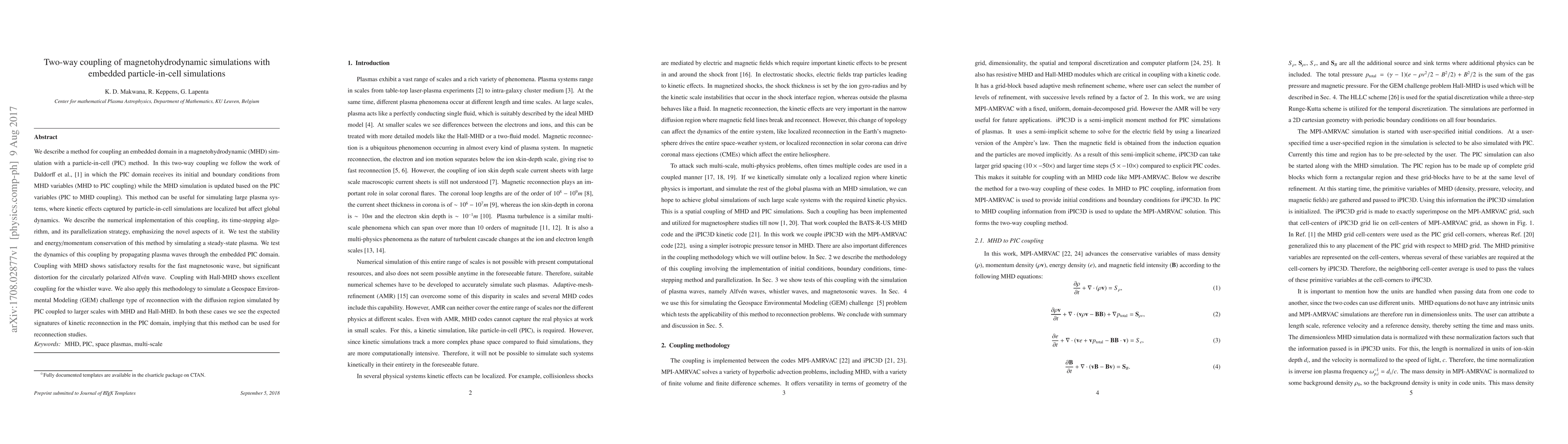 Researchers developed a method to couple magnetohydrodynamic simulations with embedded particle-in-cell simulations, allowing for the simulation of large plasma systems where kinetic effects are localized but affect global dynamics.