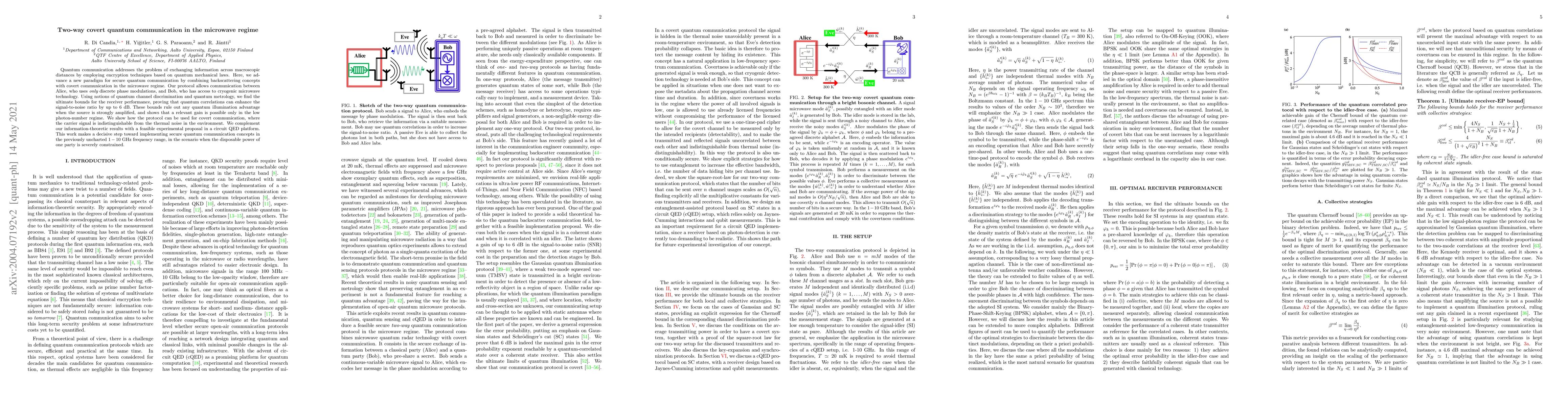 Quantum communication addresses the problem of exchanging information across macroscopic distances by employing encryption techniques based on quantum mechanical laws. Here, we advance a new paradigm for secure quantum communication by combining backscattering concepts with covert communication in the microwave regime. Our protocol allows communication between Alice, who uses only discrete phase modulations, and Bob, who has access to cryogenic microwave technology. Using notions of quantum channel discrimination and quantum metrology, we find the ultimate bounds for the receiver performance, proving that quantum correlations can enhance the SNR by up to $6$ dB. These bounds rule out any quantum illumination advantage when the source is strongly amplified, and show that a relevant gain is possible only in the low photon-number regime. We show how the protocol can be used for covert communication, where the carrier signal is indistinguishable from the thermal noise in the environment. We complement our information-theoretic results with a feasible experimental proposal in a circuit-QED platform. This work makes a decisive step toward implementing secure quantum communication concepts in the previously uncharted $1$-$10$ GHz frequency range, in the scenario when the disposable power of one party is severely constrained.