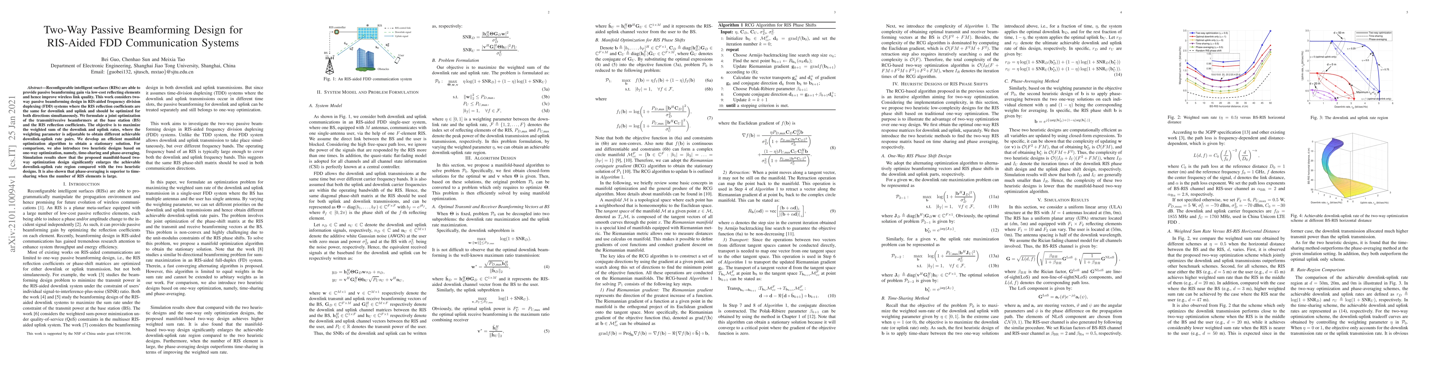 Reconfigurable intelligent surfaces (RISs) are able to provide passive beamforming gain via low-cost reflecting elements and hence improve wireless link quality. This work considers two-way passive beamforming design in RIS-aided frequency division duplexing (FDD) systems where the RIS reflection coefficients are the same for downlink and uplink and should be optimized for both directions simultaneously. We formulate a joint optimization of the transmit/receive beamformers at the base station (BS) and the RIS reflection coefficients. The objective is to maximize the weighted sum of the downlink and uplink rates, where the weighting parameter is adjustable to obtain different achievable downlink-uplink rate pairs. We develop an efficient manifold optimization algorithm to obtain a stationary solution. For comparison, we also introduce two heuristic designs based on one-way optimization, namely, time-sharing and phase-averaging. Simulation results show that the proposed manifold-based two-way optimization design significantly enlarges the achievable downlink-uplink rate region compared with the two heuristic designs. It is also shown that phase-averaging is superior to time-sharing when the number of RIS elements is large.