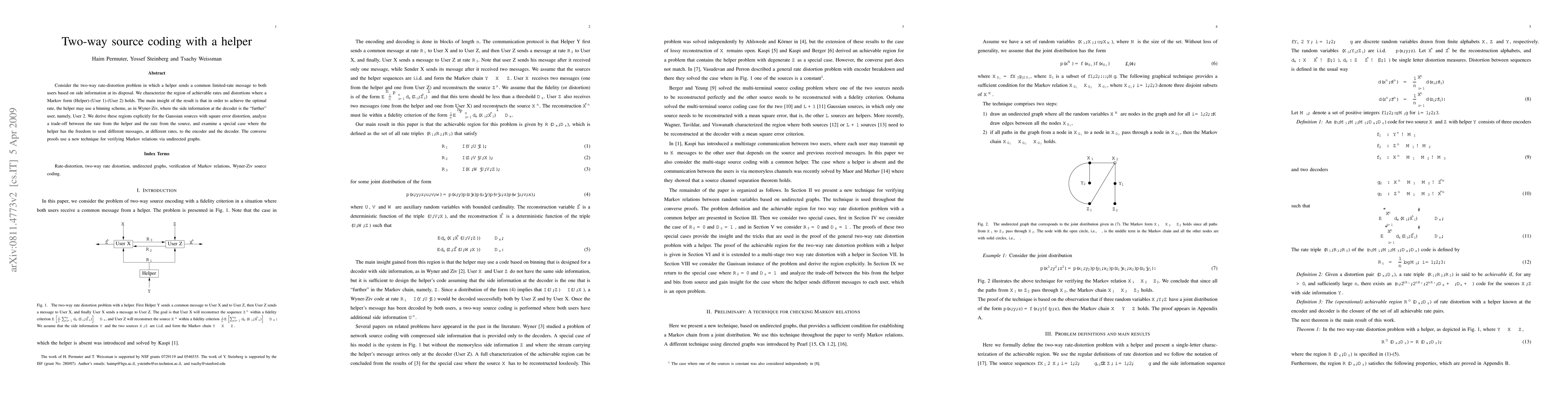 Consider the two-way rate-distortion problem in which a helper sends a common limited-rate message to both users based on side information at its disposal. We characterize the region of achievable rates and distortions where a Markov form (Helper)-(User 1)-(User 2) holds. The main insight of the result is that in order to achieve the optimal rate, the helper may use a binning scheme, as in Wyner-Ziv, where the side information at the decoder is the "further" user, namely, User 2. We derive these regions explicitly for the Gaussian sources with square error distortion, analyze a trade-off between the rate from the helper and the rate from the source, and examine a special case where the helper has the freedom to send different messages, at different rates, to the encoder and the decoder.