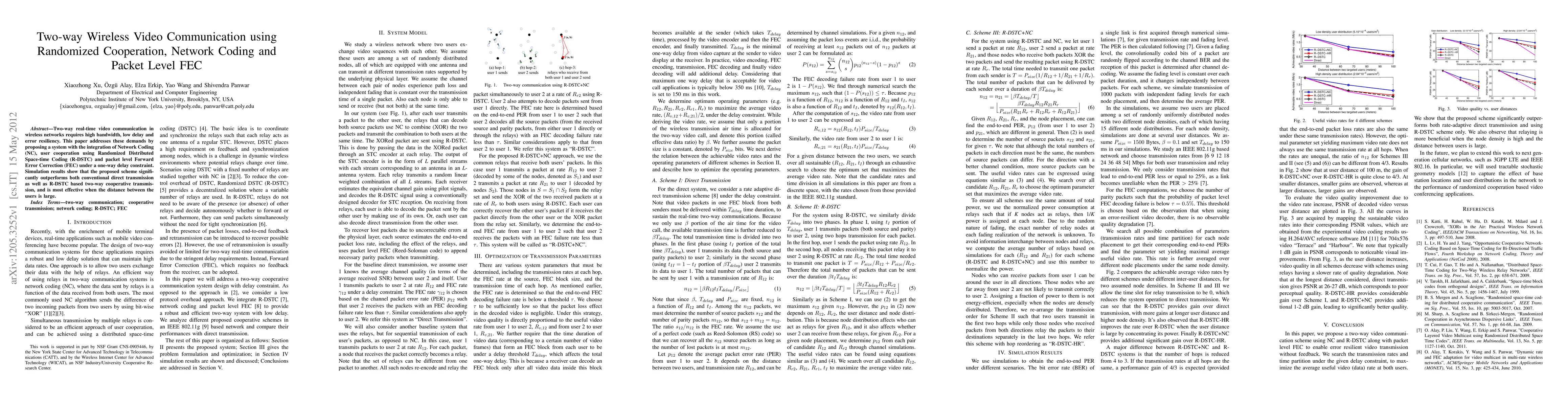 This paper proposes a two-way wireless video communication system integrating Network Coding, Randomized Distributed Space-time Coding, and packet level FEC to meet high bandwidth, low delay, and error resiliency requirements. Simulation results demonstrate superior performance over conventional methods, especially for large user distances.