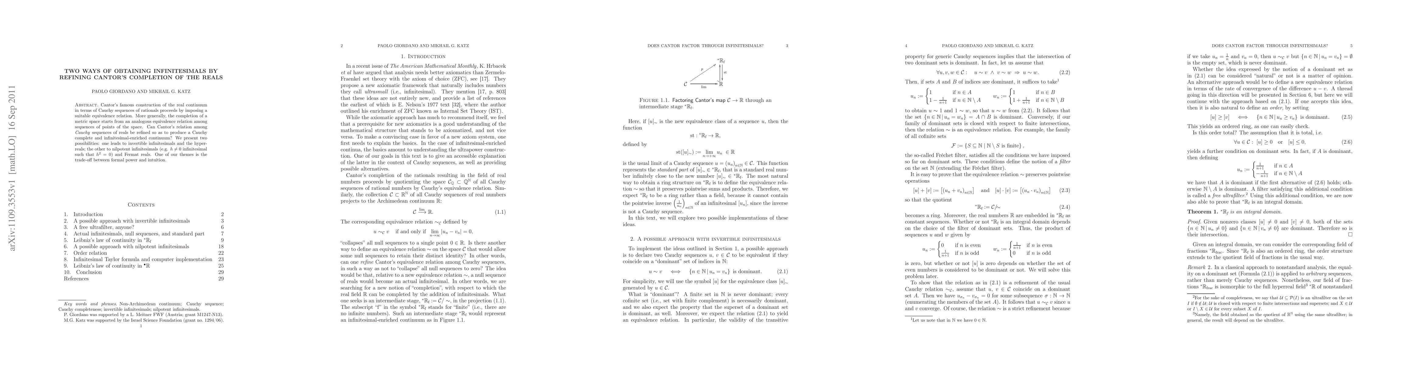 The paper explores refined completions of Cantor's construction of the real numbers to include infinitesimals, presenting two methods: one yielding hyperreals with invertible infinitesimals, and the other generating Fermat reals with nilpotent infinitesimals, balancing formal rigor and intuitive appeal.