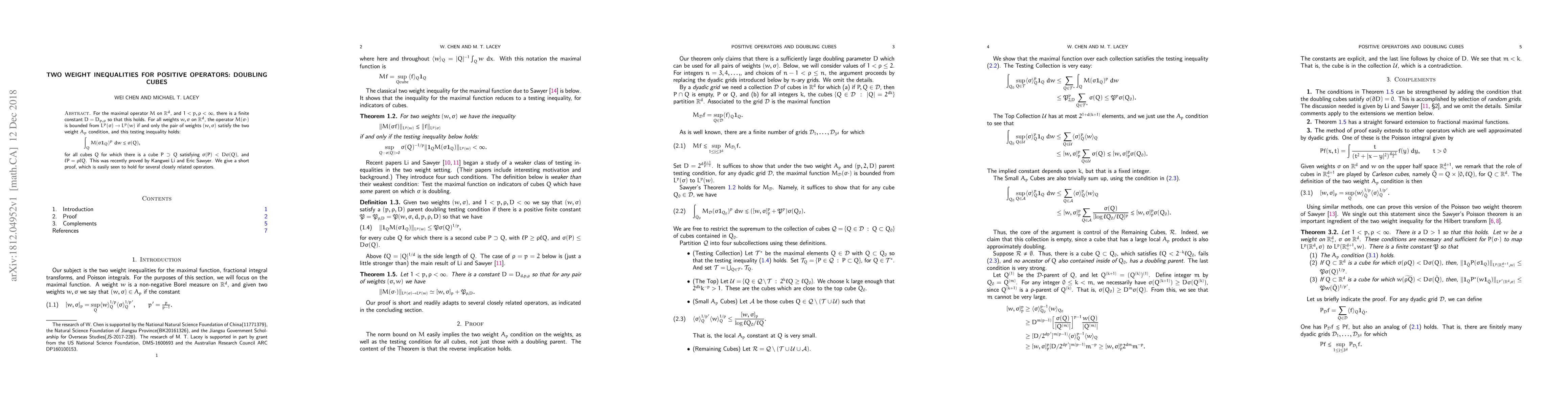 For the maximal operator $ M $ on $ \mathbb R ^{d}$, and $ 1< p , \rho < \infty $, there is a finite constant $ D = D _{p, \rho }$ so that this holds. For all weights $ w, \sigma $ on $ \mathbb R ^{d}$, the operator $ M (\sigma \cdot )$ is bounded from $ L ^{p} (\sigma ) \to L ^{p} (w)$ if and only the pair of weights $ (w, \sigma )$ satisfy the two weight $ A _{p}$ condition, and this testing inequality holds: \begin{equation*} \int _{Q} M (\sigma \mathbf 1_{Q} ) ^{p} \; d w \lesssim \sigma ( Q), \end{equation*} for all cubes $ Q$ for which there is a cube $ P \supset Q$ satisfying $ \sigma (P) < D \sigma (Q)$, and $ \ell P = \rho \ell Q$. This was recently proved by Kangwei Li and Eric Sawyer. We give a short proof, which is easily seen to hold for several closely related operators.