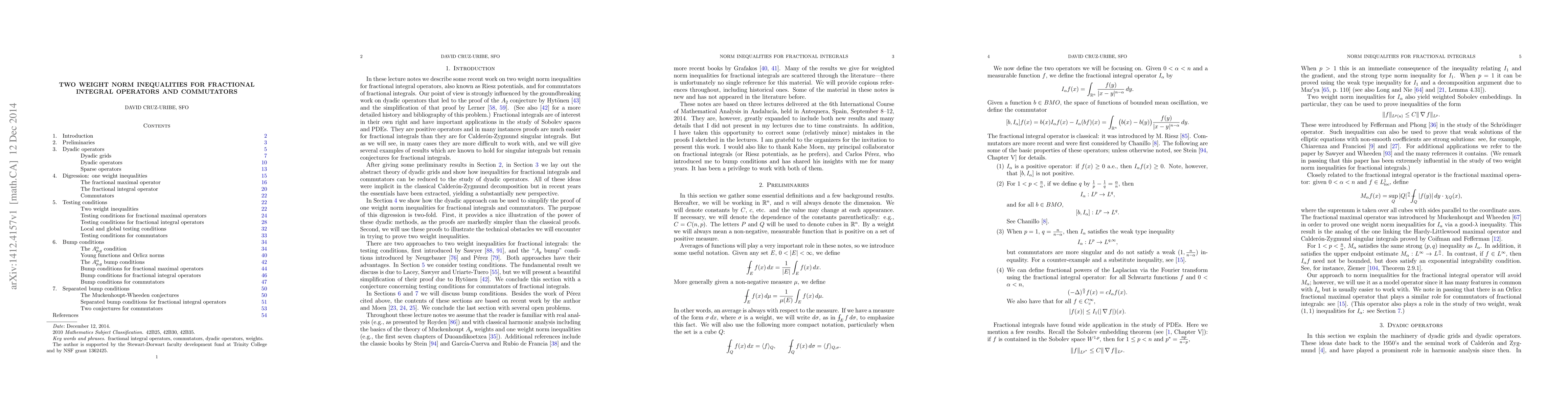 Summary: This paper elaborates on recent advancements in two weight norm inequalities for fractional integral operators, including Riesz potentials, and for commutators of fractional integrals, expanding on lecture notes from a 2014 international mathematical analysis course to incorporate new findings and additional details.