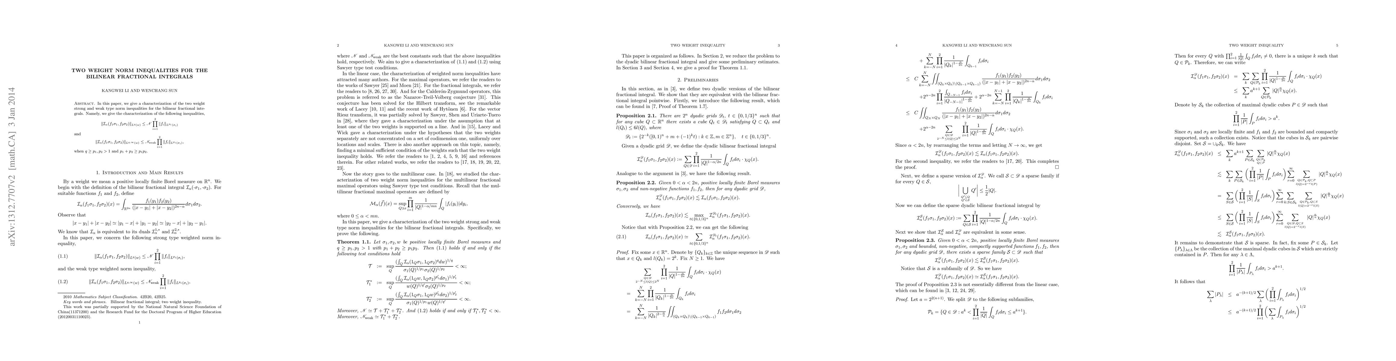 This paper characterizes two-weight norm inequalities for bilinear fractional integrals, establishing conditions under which the inequalities hold for strong and weak types, specifically for the expressions involving $L^q$ and $L^{q,\infty}$ norms.