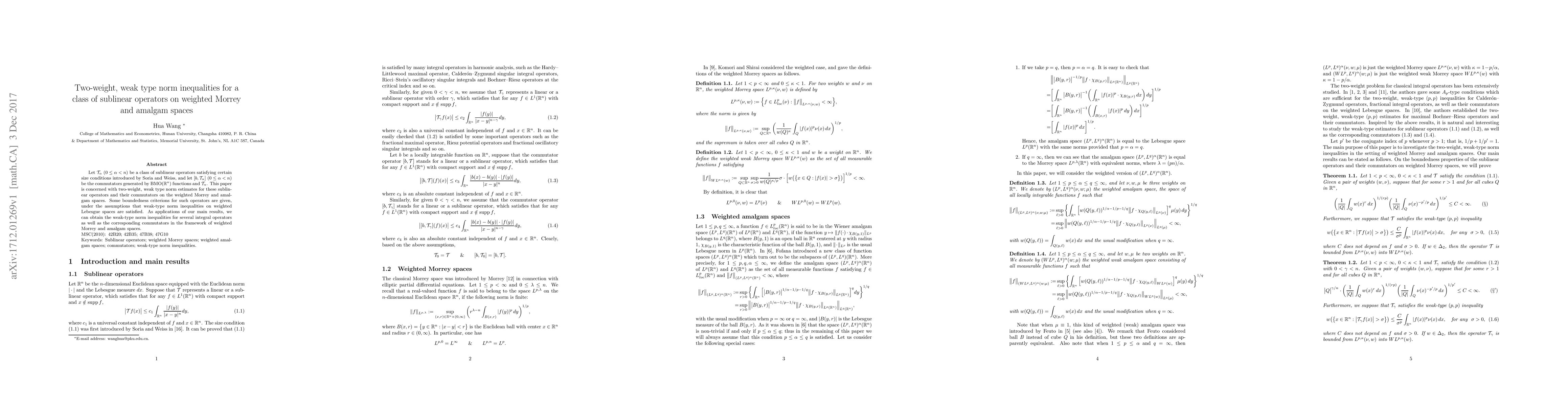 This paper investigates two-weight, weak type norm inequalities for a class of sublinear operators and their commutators on weighted Morrey and amalgam spaces. It provides boundedness criteria under the assumption of weak-type norm inequalities on weighted Lebesgue spaces, with applications to several integral operators and their commutators.