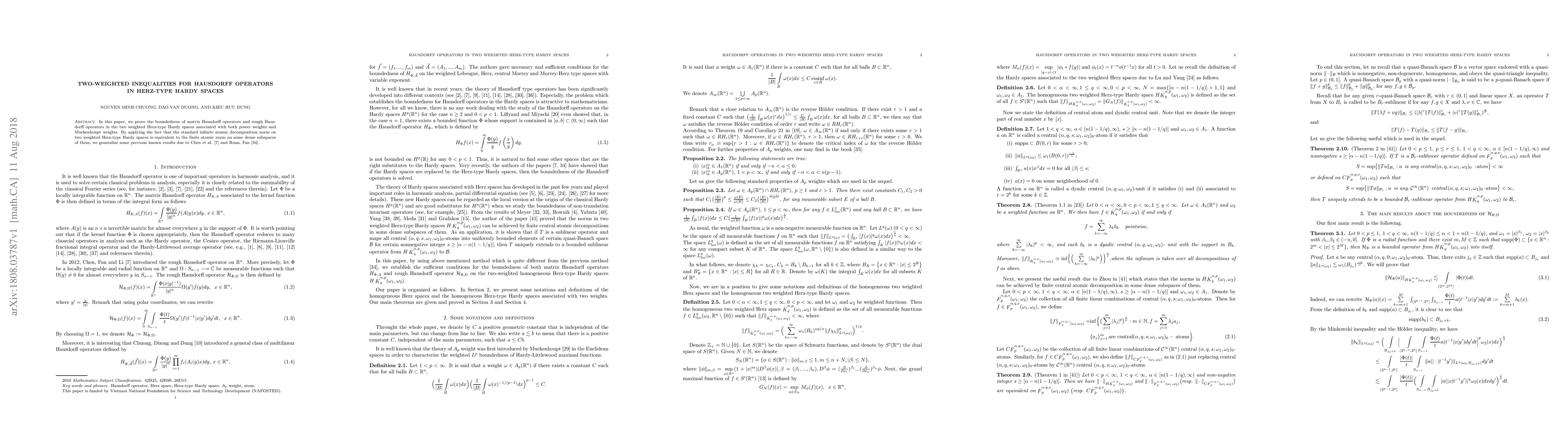 Summary: This paper establishes the boundedness of matrix and rough Hausdorff operators within two weighted Herz-type Hardy spaces, utilizing equivalences between infinite and finite atomic decomposition norms to extend prior results by Chen et al. and Ruan, Fan.