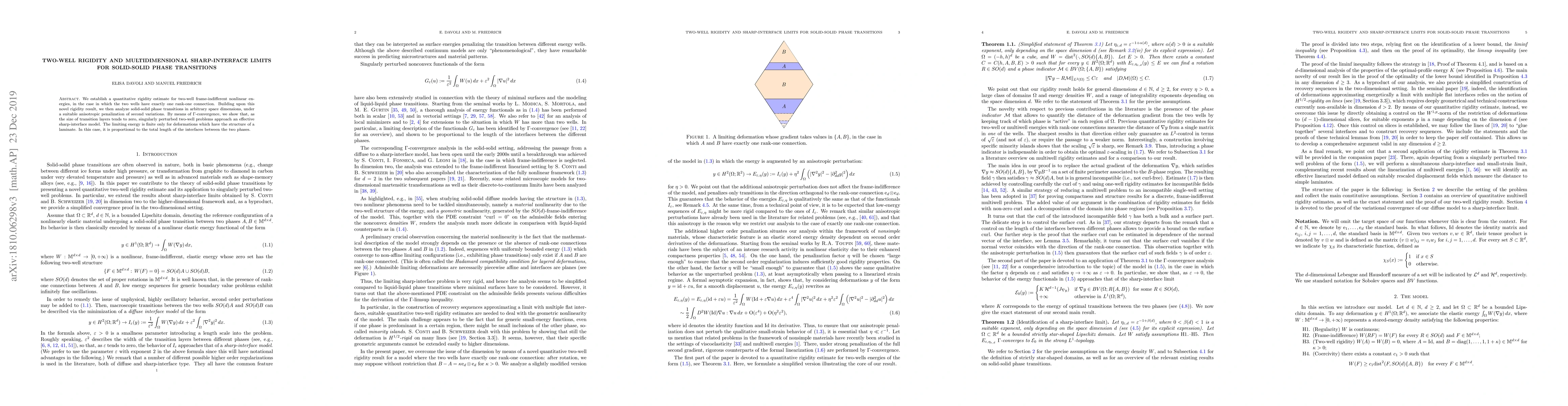 This research paper presents a rigidity estimate for two-well energies with specific well connections, enabling analysis of solid-solid phase transitions in any dimension. Using $Gamma$-convergence, it shows that as transition layer thickness decreases, singularly perturbed problems converge to a sharp-interface model. This model is finite and proportional to the interface length between phases for laminate deformations.