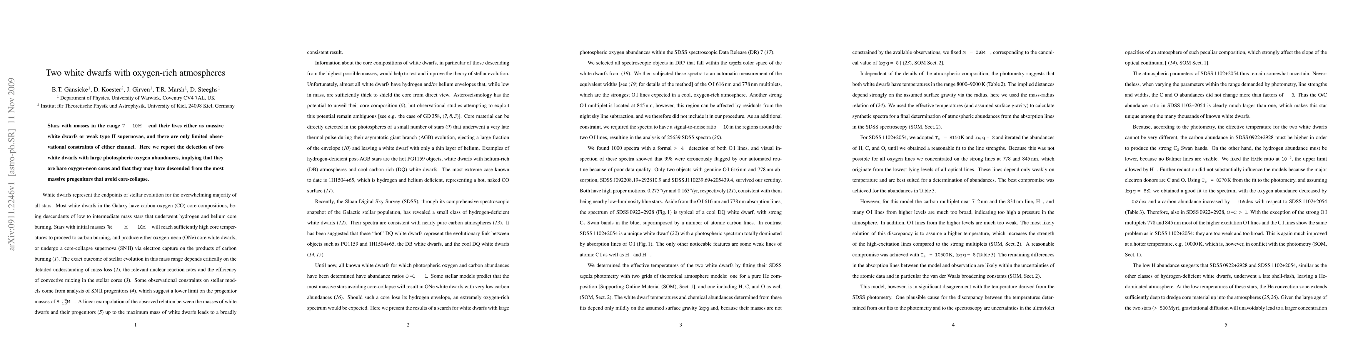 Scientists have discovered two white dwarfs with extremely high oxygen levels, suggesting they formed from massive stars that avoided a catastrophic explosion, instead leaving behind a stable compact core.