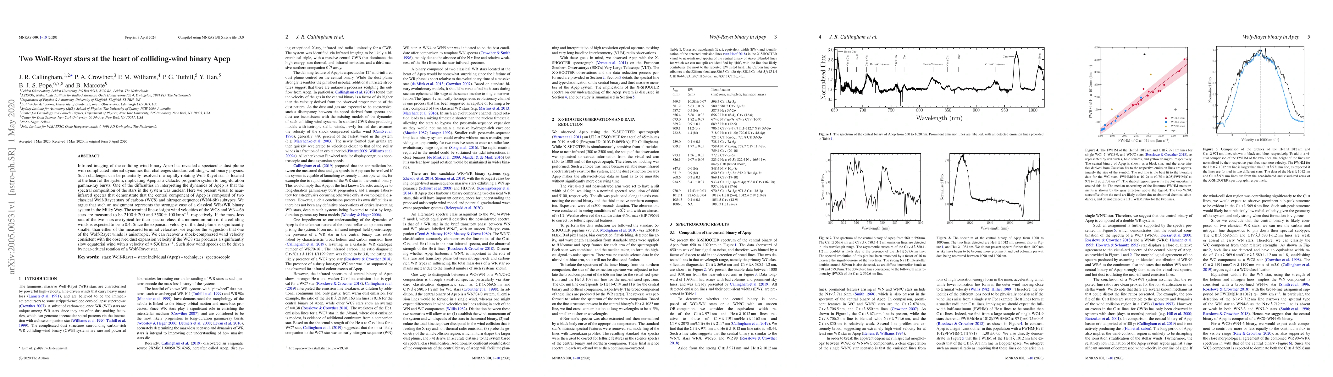 This paper identifies two Wolf-Rayet stars, WC8 and WN4-6b, at the heart of the colliding-wind binary Apep, challenging standard binary physics. The study suggests that anisotropic winds from these stars, particularly a slower equatorial wind from the WC8 star, could explain the observed dust plume dynamics.