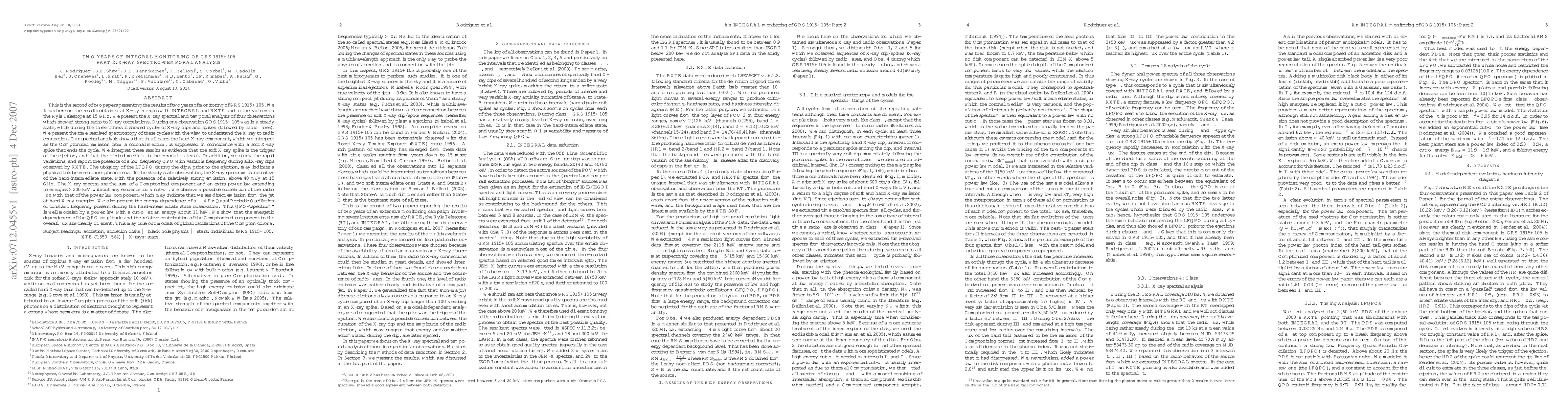 (abridged) This is the second paper presenting the results of two years of monitoring of GRS 1915+105 with \integral and \rxte and the Ryle Telescope. We present the X-ray spectral and temporal analysis of four observations which showed strong radio to X-ray correlations. During one observation GRS 1915+105 was in a steady state, while during the three others it showed cycles of X-ray dips and spikes (followed by radio flares). We present the time-resolved spectroscopy of these cyclesand show that in all cases the hard X-ray component (the Comptonized emission from a coronal medium) is suppressed in coincidence with a soft X-ray spike that ends the cycle. We interpret these results as evidence that the soft X-ray spike is the trigger of the ejection, and that the ejected medium is the coronal material. In the steady state observation, the X-ray spectrum is indicative of the hard-intermediate state, with the presence of a relatively strong emission at 15 GHz. The X-ray spectra are the sum of a Comptonized component and an extra power law extending to energies >200 keV without any evidence for a cut-off. We observe a possible correlation of the radio flux with that of the power law component, which may indicate that we see direct emission from the jet at hard X-ray energies. We study the energy dependence of a ~4 Hz QPO during the hard-intermediate state observation. The QPO-``spectrum'' is well modeled by a power law with a cut-off at an energy about 11 keV that clearly differs from the relative contribution of the Comptonized component to the overall flux. This may rule out models of global oscillations of the Compton corona.